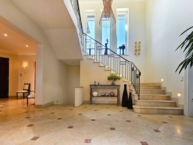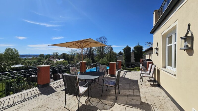 "You have to experience this house, this view, this quality of life, words and pictures are not enough. A property with such a high construction quality and variety of features is very rarely for sale!" An exclusive property - timelessly Mediterranean, built on a hill with a limitless view of Lake Starnberg and the Alps - not only visionaries will find a home here. They are looking for absolute privacy and yet plenty of space with an open and limitless view - the renowned Munich architect Boodewar has achieved the maximum here. "The basic understanding of construction, the attention to detail and sustainability anchored in houses that outlast the spirit of the times in terms of design and materials. Bringing both requirements under one roof, with the best possible and careful integration into nature and the environment," is his declared goal. The villa is perfectly embedded in the property and, thanks to its hillside location, offers a generous feeling of space on 3 levels. Lots of natural light floods the living areas, the view from all rooms is unique. The entire ground floor with over 160sqm inside is a very harmonious living area from the entrance, through the reception hall, to the spacious living and dining area with a good 100sqm. The adjacent outdoor terrace and the Mediterranean-style courtyard also offer a unique living experience. The large floor-to-ceiling windows on all levels not only invite you to let your gaze wander over the landscape, but also to go out onto the sunny terraces. Unlimited visible and tangible freedom! An absolute masterpiece, no detail was left to chance during construction. From the old brick of the Mediterranean courtyard wall to the garden design - perfection with history! The most important facts at a glance: + 2204 sqm plot with a view of the Alps, Lake Starnberg and the historic Lenné Park + spacious reception hall with cloakroom + the open gallery staircase leads to the bedroom suites with their own ensuite bathrooms + 9 rooms & 4 bathrooms on over 590 sqm living space + floor-to-ceiling windows throughout the house (with burglar-resistant glass) + extra large doors in white piano lacquer + living room, dining room and the open kitchen are harmoniously lined up and offer a unique sense of space with a ceiling height of 2.75 m (also on the upper floor) + open natural stone fireplace + first class entertainment, home cinema and a multi-room music system with all technical refinements and high-end devices ensure the perfect sound inside and out + acoustic ceilings and soundproof doors in the living room & fitness area (can be turned up) + all floors, stairs, window sills in the entire living area made of Jerusalem Stone + high-quality carpenter's kitchen with natural stone worktop, technically well equipped + Mediterranean courtyard and sunny terraces with Alpine and lake views + in-house vaulted wine cellar + 70sqm fitness and wellness area, sauna / sanarium and relaxation room with garden terrace + the highlight, year-round outdoor pool with 14mx 4.5m & 1.55m depth (pool technology and roller blind renewed in 2024) + separate guest apartment with bathroom in the annex (own entrance from outside) + underfloor heating in all living areas + alarm system with smoke detector connection, and connection to the security service + central vacuum cleaner system, laundry chute system + energy rating A+, built in 2005 with today's standards + oversized double garage - also for electric cars (high voltage current is available) + hand-forged gate system and external fence + professionally landscaped garden with solitary trees, sight lines and light objects Thanks to the stepped design of the property and the neighboring buildings, you can enjoy absolute privacy in the garden & when swimming in the pool. The list of details is endless, you have to see & experience this house. Location The municipality of Feldafing, "Pearl on the Lake", is located on the western shore of Lake Starnberg. To the north it borders Pöcking, to the south Tutzing and to the west the Tutzing district of Traubing. The lake forms the natural border in the east. The property is located on a hill in beautiful Feldafing on Lake Starnberg. A privileged location with neighbors at eye level. You not only have a view of the lake and the Alpine chain, but also of Lenné Park, a unique large landscape park in the English style on the shore of the lake, where you can relax or enjoy swimming in the beautiful Lake Starnberg in summer. A highlight for golfers - one of the most beautiful 18-hole golf courses is embedded directly on the lake shore in Lenné Park and can be reached on foot. This is a great place to live, with the lake on your doorstep, at the gates of the state capital and a stone's throw from the mountains. In the immediate vicinity you will find almost everything you need for your daily needs within walking distance. Excellent transport links - 30 minutes to Munich by car or with the S6 S-Bahn. In Tutzing you can board the Werdenfelsbahn. It travels from Munich to Garmisch and then on to Innsbruck and offers its passengers a unique view.