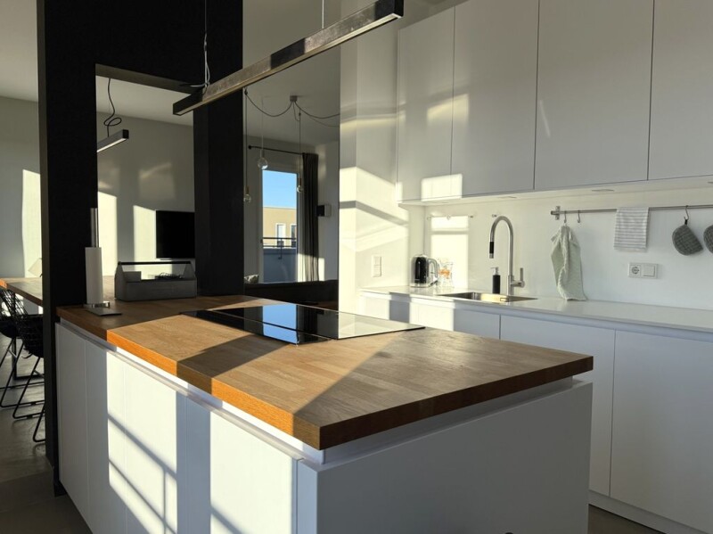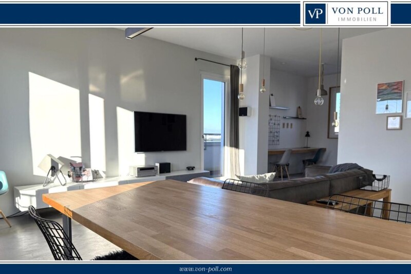 The exclusive penthouse on the 4th floor offers four spacious rooms. It is located in a residential building with 12 residential units that was completed in 2015 and impresses with its modern, individual and high-quality furnishings, which are included in the purchase price. The bright and open-plan apartment impresses right from the entrance area with its ceiling height of around 2.80 meters and around 3.00 meters. As well as with its special apartment floor plan with the dominating living/dining area and the adjoining high-quality open fitted kitchen. From here and from the bedroom you can access the terrace. You can also access the terrace from the bedroom. The apartment also has a guest room with a sofa bed, which also has an infrared sauna (Klaf). There is also a separate study. The apartment has a spacious daylight bathroom with a bathtub, separate shower, vanity and toilet. There is also a guest toilet. The photos show the apartment with inventory. The inventory can be taken over when purchasing. The apartment is in a very well-maintained, almost new condition with high-quality fittings. The apartment is equipped with underfloor heating. The shimmering gray floor (concrete floor), professionally known as "concrete ciré" or microcement, is a decorative micro mortar for creating seamless surfaces. It looks elegant and minimalist. In the basement, the house has a laundry and drying room as well as a storage room that is assigned to the apartment. An underground parking space can be purchased for an additional 30,000 euros.Since the beginning of this century, Riedberg has been rebuilt from scratch as a Frankfurt district close to the city center. The convenient infrastructure in particular makes this location attractive for singles, families and older people. The Science City, the Frankfurt Johann Wolfgang Goethe University borders the Riedberg center. Everyday needs can be taken care of quickly. Doctors, schools, kindergartens and numerous shops are in the immediate vicinity (a shopping arcade with Rewe, Aldi, drugstore and much more). The district offers a variety of leisure activities as well as opportunities to relax and enjoy yourself. In addition to the extensive and interconnected green spaces in the district, the proximity to the Taunus and the very good accessibility of Frankfurt city, there are a large number of leisure activities on offer locally (such as sports clubs, riding clubs, etc.). The Riedberg district is centrally located in the Rhine-Main area and has excellent transport links with fast routes to Frankfurt city, the airport and the surrounding area. You can reach the city center in just 15 minutes using public transport (U8/U9 subway lines). - High-quality furnishings (inventory can be taken over) - Open branded fitted kitchen - Infrared sauna - Room height between approximately 2.80 m and approximately 3.00 m - Underfloor heating - Concrete floor - Seamless cement floor - Triple-glazed windows (some floor-to-ceiling) - Windows with push-button locks - Laundry and drying room - Passenger elevator - Underground parking space (purchase price 30,000 euros) An energy consumption certificate is available. This is valid until June 5, 2033. Final energy consumption is 86.20 kWh/(m²*a). The main energy source for heating is fossil CHP. The year the property was built according to the energy certificate is 2015. The energy efficiency class is C. MONEY LAUNDERING: As a real estate agency, von Poll Immobilien GmbH is obliged according to Section 2 Paragraph 1 No. 14 and Section 11 Paragraphs 1 and 2 of the Money Laundering Act (GwG) to establish and verify the identity of the contractual partner when establishing a business relationship, or as soon as there is a serious interest in implementing the property purchase contract. To do this, it is necessary that we record the relevant data from your ID card (if you are acting as a natural person) in accordance with Section 11 Paragraph 4 GwG - for example by means of a copy. For a legal entity, we require a copy of the commercial register extract showing the beneficial owner. The Money Laundering Act stipulates that the agent must keep the copies or documents for five years. As our contractual partner, you also have a duty to cooperate in accordance with Section 11 Paragraph 6 GwG. LIABILITY: We would like to point out that the property information, documents, plans, etc. we pass on come from the seller or landlord. We therefore do not accept any liability for the accuracy or completeness of the information. It is therefore the responsibility of our customers to check the property information and details contained therein for accuracy. All property offers are non-binding and subject to errors, prior sale and rental or other interim use. OUR SERVICE FOR YOU AS AN OWNER: If you are planning to sell or rent your property, it is important for you to know its market value. Have the current value of your property professionally assessed by one of our property specialists free of charge and without obligation. Our nationwide and international network enables us to bring sellers or landlords and interested parties together in the best possible way.