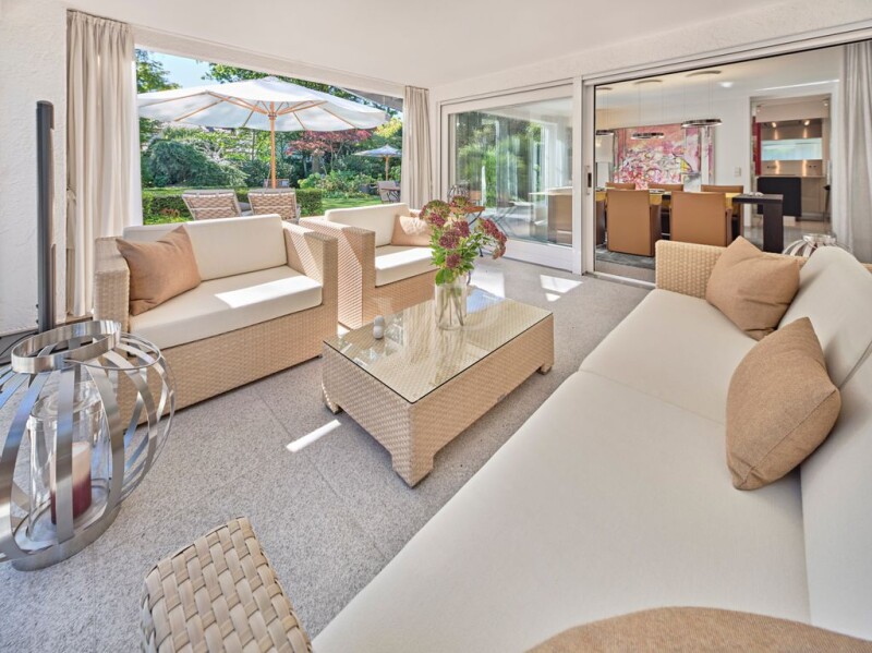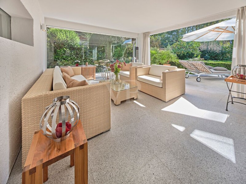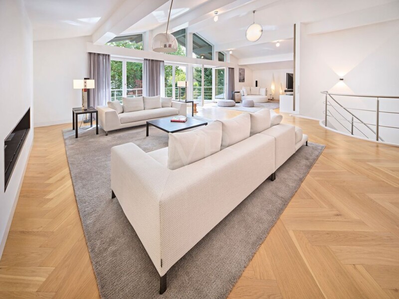 The detached house offered here from 1982 is located on a spacious plot of approx. 1,143 m² and offers a living space of around 341 m². The property was taken over by the current owner in 2008/2009 and extensively renovated and modernized. A well-known Dutch architect is responsible for the project. Only high-quality materials were used. The property was last repainted inside in 2019 and is very well maintained overall, so that it is in new condition. Further information can be found at www.von-poll.com/chiemsee or directly by email at chiemsee@von-poll.com or at 08051 96 18 800. Against the picturesque backdrop of the Bavarian Alps, the market town of Prien (approx. 10,000 inhabitants) lies on the western shore of Lake Chiemsee. The Kneipp and climatic health resort with its own marina has retained its rural and family charm to this day. Prien offers excellent, fast connections by train to Munich, Salzburg, the airport and the most important motorways. Locals and tourists alike appreciate the ideal transport connections by car or train to Salzburg and Munich. The university town of Rosenheim, the cultural and economic centre of southeast Bavaria, is only about 24 km away. In Prien you will find all the shops you need for your daily needs as well as doctors, pharmacies, kindergartens and all secondary schools. The town centre and the lake promenade invite you to stroll with their numerous shops, bars and restaurants. The first-class range of medical facilities and specialist clinics secures long-term jobs and economic growth. The house offered here is in a quiet location within walking distance (900 m) of Lake Chiemsee, in a part of the municipality of Prien am Chiemsee. Distances: Schraml Prien lido approx. 1.7 km Stippelwerft sports boat harbor with moorings approx. 1 km Moorings at the yacht hotel approx. 2.1 km Rosenheim approx. 24 km Salzburg approx. 68 km Munich approx. 90 km Salzburg Airport approx. 62 km Munich Airport approx. 127 km General renovation in 2008/2009 NEW: •Kitchen: Italian designer kitchen by VARENNA, electrical appliances by Gaggenau •Bathrooms: Tiles by the award-winning MOSA Design Team, Duravit ceramics, Dornbracht fittings •Floors: Tiles on the ground floor, parquet and carpet on the upper floor •New interior paint in 2019 •Lighting concept •Alarm system with connection to security service •Built-in furniture •Open spiral staircase as a design element with stainless steel railing •Music and television system with sound concept by Bang & Olufsen •Terrace extended, new flooring with lighting concept and glazing •Electric shutters •Electrics •Redesign of north facade •Exterior walls on upper floor newly insulated with new wooden cladding •Roof renovation including insulation •Solar collectors for hot water •Empty pipes for photovoltaics •Garage door •Paving of the driveway and all paths at the house including lighting •Garden house •Garden gates •Exterior completely painted GROUND FLOOR •Reception area with large mirror front, access to guest toilet, storage room and garage •Guest suite with en-suite bathroom •2008/2009 Italian designer kitchen by VARENNA, electrical appliances by Gaggenau including wine climate cabinet (dishwasher 2019, coffee machine 2021 and refrigerator 2022), from here access to the orangery, utility room and boiler room •Conversion of utility room 2012 with: oBuilt-in furniture oWater treatment system oSauna connection •Dining area divided into dining area, aperitif lounge and outdoor seating •Tiled floor everywhere •Windows partly barred from the outside •Spacious open spiral staircase to the upper floor UPPER FLOOR •Open living area with gas fireplace and built-in shelves •Open ethanol fireplace, Planika with extra motor-controlled ventilation (Planika fireplaces with BEV technology offer the cleanest bioethanol combustion ever thanks to the use of Fanola bioethanol. As the flame is created by the combustion of ethanol vapors, there is no direct contact between the fire and the liquid fuel, which avoids the emission of smoke, soot and ash.) •Library area with wall-high bookcases •Master bedroom with floor-to-ceiling windows, built-in closet, en-suite bathroom with large vanity with base cabinet, shower and toilet •2nd Bedroom with floor-to-ceiling windows, en-suite toilet, large built-in closet •Parquet floors, carpet in the master bedroom only •New drywall walls •Spacious storage room in the sloping roof •Large balcony with glass floor, stainless steel railing OTHER •Oil heating from 1994, new burner 2024, oil tank 10,000 liters •2004 - 2009 redesign of the garden, including lighting of distinctive trees. An energy consumption certificate is available. This is valid until April 1, 2034. Final energy consumption is 91.90 kwh/(m²*a). The main energy source for the heating is oil. The year the property was built according to the energy certificate is 1982. The energy efficiency class is C. MONEY LAUNDERING: As a real estate agency, von Poll Immobilien GmbH is obliged according to Section 2 Paragraph 1 No. 14 and Section 11 Paragraphs 1 and 2 of the Money Laundering Act (GwG) to establish and verify the identity of the contractual partner when establishing a business relationship, or as soon as there is a serious interest in implementing the property purchase contract. To do this, it is necessary that we record the relevant data from your ID card (if you are acting as a natural person) in accordance with Section 11 Paragraph 4 GwG - for example by means of a copy. For a legal entity, we require a copy of the commercial register extract, which shows the beneficial owner. The Money Laundering Act stipulates that the agent must keep the copies or documents for five years. As our contractual partner, you also have a duty to cooperate in accordance with Section 11 Paragraph 6 GwG. LIABILITY: We would like to point out that the property information, documents, pla