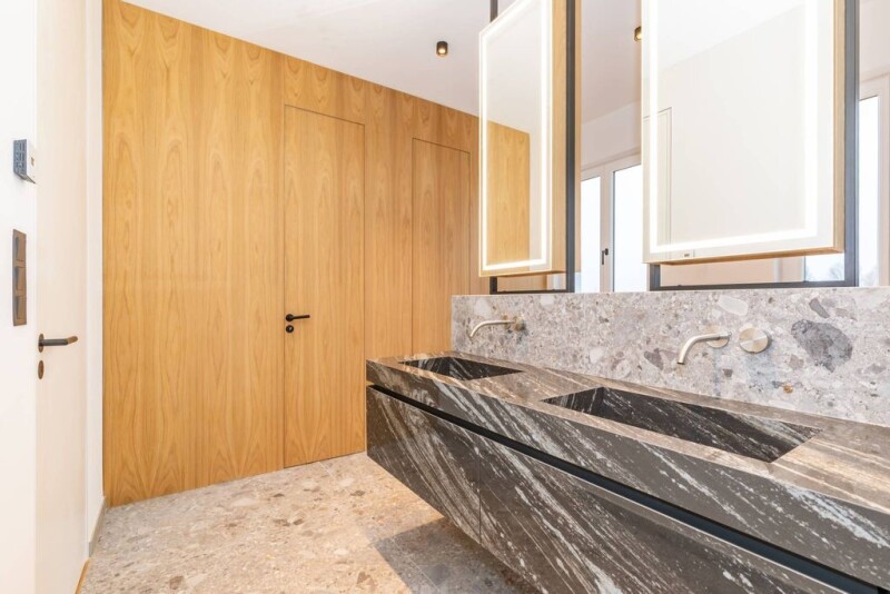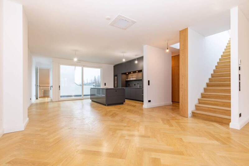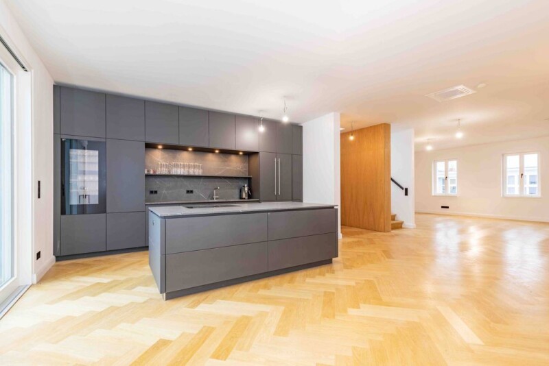 This exquisite penthouse combines modern luxury with thoughtful design. Featuring 3-4 spacious bedrooms, an open living, dining, and kitchen area seamlessly connected to an elegant terrace, it is ideal for discerning buyers. The highlight is the 37 sqm rooftop terrace, offering breathtaking views over Berlin. The master bathroom boasts a freestanding Neoro n50 bathtub for a unique wellness experience, complemented by two stylish guest bathrooms. The well-planned layout includes two utility rooms and a spacious walk-in closet. A separate guest or children's area with a private entrance ensures privacy and comfort. High-end features include a custom-built kitchen with premium appliances from Liebherr, Siemens, Miele, and Bora, with direct terrace access—perfect for outdoor dining. Its prime location offers excellent shopping, leisure options, and seamless transport connections to key city destinations.