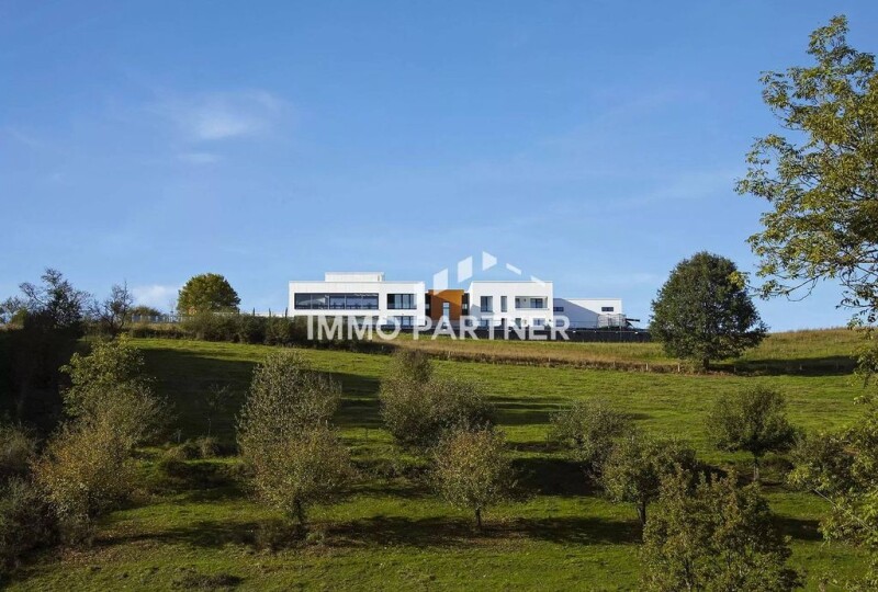 Just a stone's throw from the Luxembourg border, this luxurious property of 786 m² on a plot of over 3000 m² is located in the middle of nature with an extraordinary panoramic view. The elegance of an ultra modern architecture for all buildings, will offer you vast possibilities, such as the exploitation of offices of a surface of 777 m ², the organization of dependency for your customers and your employees or a peaceful and calm home. From the utilitarian point of view, the office buildings include several meeting rooms, including a large refectory. High quality flooring in solid parquet, marble and tiles is attractive and easy to maintain. The four doors, all with an automatic locking system and fingerprint opening, are ideal for your employees who can access without keys at the times you set. The heated pool outside the resort invites to spend relaxing moments, as well as the sauna or fitness center inside the building. A party room with access to a large terrace and two bars are at your disposal for each private or professional celebration to be successful. The main building comprises two very modern and well-equipped kitchens spread over two floors. The cold room guarantees at any time the preservation of refreshing drinks and fresh food to spoil a large number of guests. You can park up to ten cars in the many garages, also equipped with fingerprint opening. The outer courtyard of the building is very spacious and allows the parking of many additional vehicles. Especially practical: a small hall designed to park a truck, a motorhome or at least a bus. Is in the same complex, a quality apartment on the ground floor containing a living area of 116 m². The property can be rented for attractive rent, given the many advantages including the proximity to Luxembourg. Thanks to the photovoltaic system placed on the surface of the roofs of 394 m², equivalent to 56.9 kWp, producing an annual profit of 7.000.- €. Goodbye to expensive electricity costs. To optimize the various technologies, a heat pump, a central ventilation system with heat recovery and a solar domestic water system are installed.