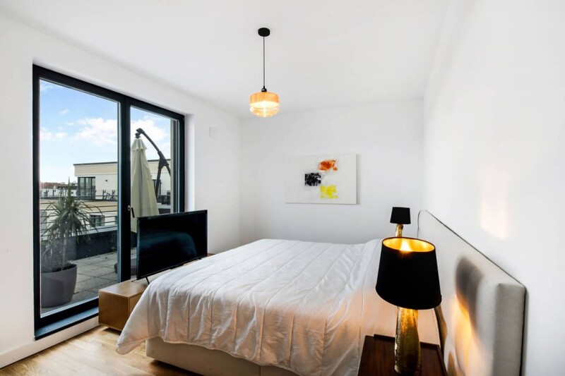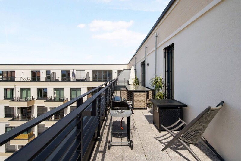 Welcome to your new home - an exclusive penthouse located on the top floor of the Mulberry Yards complex. The well thought-out floor plan includes a spacious living, kitchen and dining area as well as a separate sleeping area. This clever layout is ideal for families and couples who like to entertain and spend a lot of time in the living area. A particular highlight of the penthouse is the spacious south-west-facing terrace. Here you can spend cosy evenings around the fire table or linger in the stylish outdoor lounge. The terrace is the perfect extension of the living space. Further amenities of the penthouse include an underground car park and a utility room, which offers additional storage space. There is also a cellar room for extra storage space. The well-tended surroundings with landscaped courtyards create an oasis of peace and relaxation. Enjoy the comfort and elegance of this penthouse and experience a special feeling of living.