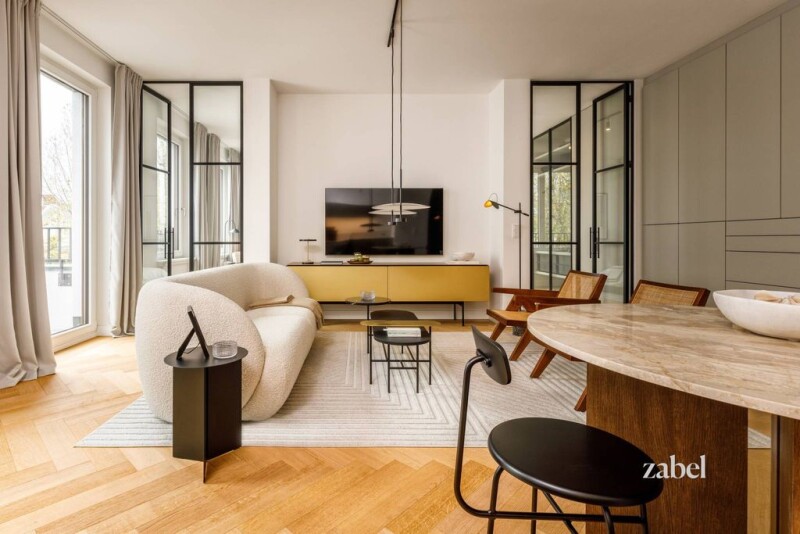 Welcome to your exclusive home in the vibrant City West of Berlin! This exquisite, recently completed apartment with a living space of almost 78.76 m² offers you the highest level of luxury and comfort. Located on the 5th floor of an elegant new townhouse with a total of 6 floors, it impresses with its outstanding location near the famous Savignyplatz. The apartment has 2 spacious rooms, including a bedroom, which offers you an oasis of peace and relaxation. The bathroom seduces you to relaxing moments with its modern design and high-quality fittings. The living area radiates with a spacious floor plan and an inviting ambience. A balcony invites you to enjoy the rays of sunshine and let your gaze wander over the lively hustle and bustle of the City West. The townhouse promises a top-class living culture. A representative entrance area welcomes you warmly and underlines the exclusive character of the building. A private courtyard garden at the rear invites you to linger and relax, while an underground car park ensures convenient parking. The apartment was furnished to a high standard by the project developer, including a very high-quality kitchen, which is included in the purchase price. The new furniture can be taken over by the buyer if desired, which means that the unique living experience can be further individualized. The apartment's furnishings impress with high-quality real wood parquet, elegant paneled doors and exquisite bathroom tiles, which can be designed in various colors. An elevator and a basement round off the offer and offer the highest level of living comfort. Experience timeless elegance and urban luxury in your new home in Berlin. Available immediately.The area around Berlin's Savignyplatz in the Charlottenburg district is traditionally a location for Berlin's intellectuals, creatives and art supporters. It is the heart of the City West and has largely retained its Wilhelminian structure to this day. With its location between the fashionable Kurfürstendamm and the science center of the Technical University of Berlin, the district is a popular residential area for the Berlin bourgeoisie.Particular attention is paid to the entrance of the house. The representative entrance area is designed to reflect the sophisticated character of the building and underline the importance of the new address in the urban context. The 30 sqm lobby uses selected materials such as natural stone, patinated brass and large-format mirrors and exudes elegance. At the back of the building is the beautifully landscaped courtyard garden, the design of which meets the architectural requirements. In the basement, in addition to the private parking spaces, there are also the cellar rooms of each apartment; these are among the numerous amenities offered to residents at the highest level. Parquet: Real wood parquet with a surrounding frieze and profiled skirting boards create an exclusive living experience. Doors: Paneled doors and profiled frames underline the classically elegant lines of the house. Final energy requirement: kWh/(m²·a).