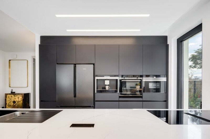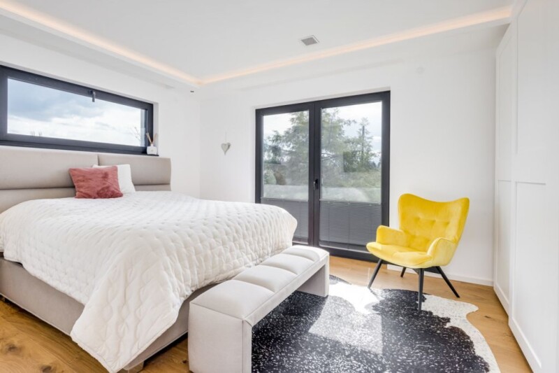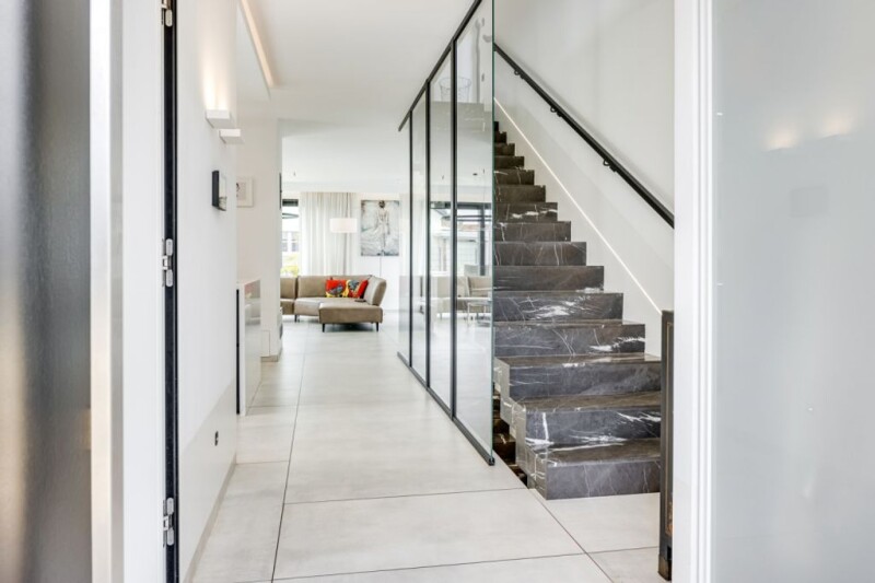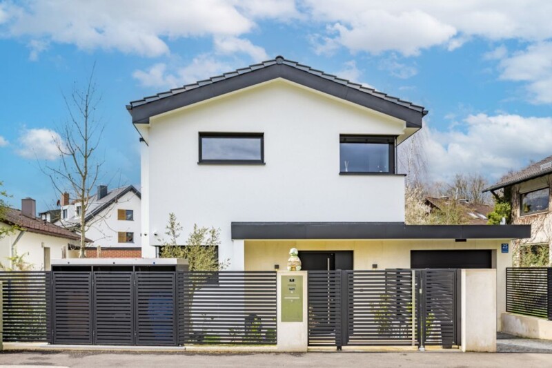 Available immediately! Modern & new detached house on a sunny plot in a quiet location Allach-Untermenzing is the northwesternmost district of the state capital Munich. For families and working couples, the district is a popular, quiet place to live in the vibrant metropolis. Allach-Untermenzing is characterized by a number of green spaces, especially along the Würm. With the Allacher Forst, Allacher Lohe, Kies-Trasse dry biotope and the Angerlohe, the district offers many ecological leisure and recreation areas. The house on offer is in an excellent location. Located in a cul-de-sac with no through traffic and on an undeveloped meadow, you will find the peace and quiet you need after a hard day at work. The local infrastructure is particularly worth mentioning for families. Facilities such as daycare centers, kindergartens, a primary school and a middle school are within walking distance. Secondary schools such as the Untermenzing high school can also be reached in a few minutes by car. Shops for daily life are available in the town. Whether supermarkets, doctors, pharmacies or clothing stores - you will find everything in just a few minutes by car. In addition, the connection to the center of Munich is excellent. With the S2 you can reach Munich's Stachus in just 17 minutes (!). In addition, the A8 and A99 motorways provide quick connections to Munich Airport (approx. 20 minutes by car) and the surrounding area of Munich. In addition to the nearby bathing lakes such as the Lußsee, you can reach all the lakes of the Five Lakes Region in around 30 minutes by car. A trip to the mountain landscape around Garmisch-Partenkirchen is also just a stone's throw away at around 70 minutes by car. Welcome to your new home in Munich Allach-Untermenzing! A modern single-family home for people with high standards will be built in 2020 on a cozy 328 sqm south-west plot. Inside and out, the solid house from the BAUSHAUS architectural firm in Munich exudes pure luxury. Four bedrooms, three bathrooms and a light-flooded and open living, kitchen and dining area are spread over a pure living area of approx. 165 sqm and a living area of approx. 190 sqm. There is also a private fitness room, an office and various rooms in the basement. You will not lack space in this dream home. The heart of the house is on the ground floor - an open living, kitchen and dining area measuring over 60 sqm. When you enter, the luxury of the house is quickly apparent: oversized 2.60 mx 1.20 m tiles, a ceiling height of 2.75 m, floor-to-ceiling windows on all sides, Busch Jäger Free@Home home control, elegant fireplace with glass front and sides, modern ASMO kitchen (partly with Gaggenau appliances) and much more! The floor-to-ceiling windows lead you into the sunny south-west garden, which is also a great place to linger in the evenings. The ground floor is rounded off with a high-quality daylight bathroom with a large bathtub. The staircase, clad in glass walls and marble steps, leads to the bright upper floor. The current floor plan includes three bedrooms and a large shower room. An extension to four bedrooms or another home office room would be possible with little effort. The bedrooms have high-quality parquet flooring, while the hallway and bathroom have luxurious 2.60 m tiles. On this floor, too, underfloor heating, lights and shutters are controlled with the Busch Jäger Free@Home elements. In the basement, which is very homely with a ceiling height of 2.80 m, you will find the utility room, a small office room, a large bedroom and the fitness and spa area. This consists of a private fitness room and a bathroom with a sauna facility. There are also other rooms with plenty of storage space and usable space. The detached house on offer is rounded off with a single garage with an electric door for compact vehicles. Larger vehicles can be parked in front of the garage. As good as new - modern - bright - solid brick house (36.5 cm brick) - built in 2020 - cozy property with south-west orientation - four bedrooms (expandable to five) - three bathrooms - open kitchen, living and dining area - own fitness room with adjoining spa area (sauna facility) - high-quality 2.60 mx 1.20 m tiles throughout the house except for bedrooms - fine parquet flooring in all bedrooms - underfloor heating in all living rooms - glazed staircases - stairs made of fine marble - ventilation system throughout the house - decalcification system - digital light and heating control in every room - ceiling heights: 2.80 m in the basement, 2.75 m on the ground floor, 2.60 m on the upper floor - utility room - lots of storage space in various basement rooms - own workshop room - single garage with electric garage doors - additional outdoor parking space - and much more! Have we piqued your interest in this fantastic house? If you are interested, you can contact us at any time by phone or email. Our search customers always receive information about new properties and discreet marketing first. Register with us now and never miss an offer again. Follow us on Instagram (@jannik.zimmer.immobilien) and don't miss any updates on the real estate market. We look forward to hearing from you! Legal information: All information is provided without guarantee and is based exclusively on information provided to us by our clients. We assume no liability for the completeness, accuracy and timeliness of this information.