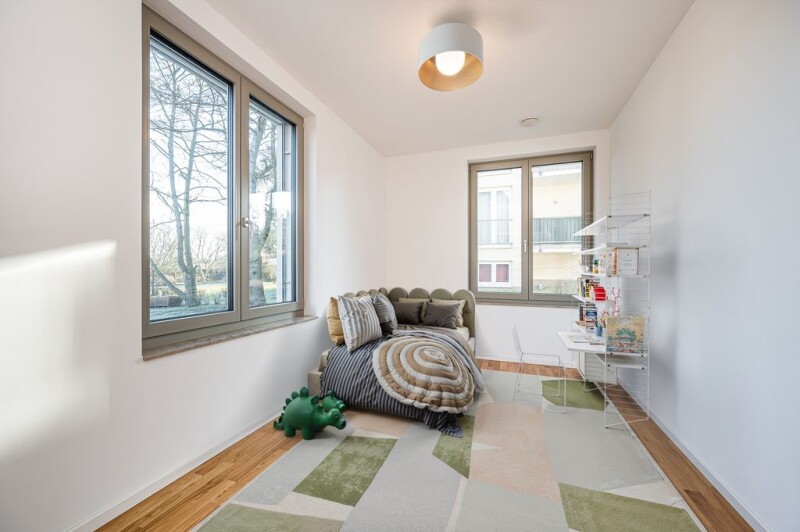 Familienfreundliche Etagenwohnung im modernen Ambiente Altglienicke liegt im Südosten Berlins und gehört zum wasserreichsten und grünsten Bezirk Berlins: Treptow-Köpenick. Insbesondere die landschaftliche und architektonische Vielfalt machen diesen Ortsteil zu einer äußerst begehrten Wohnlage. Der nahegelegene Müggelsee als größtes stehendes Gewässer der Stadt, die Flüsse Dahme und Spree sowie Berlins höchste Erhebung, die Müggelberge, zeigen, dass Großstadtleben durchaus vereinbar ist mit Natur, Ursprünglichkeit und Wohnen in großzügiger Weiträumigkeit. Durch seine zahlreichen Freizeitaktivitäten und die Nähe zum neuen Hauptstadtflughafen BER, sowie die Ansiedlung mehrerer internationaler Großkonzerne (u.a. Tesla, Amazon, Mercedes-Benz, Allianz), ist Grünaus Wohnqualität stetig gestiegen. Besonders junge Familien, die die kinderfreundliche und naturbelassene Lage zu schätzen wissen, zieht es in den letzten Jahren in den südöstlichen Teil der Hauptstadt. Die Lage verbindet Ruhe, Natur und Idylle mit allen Vorzügen der Großstadt. In der Nähe befinden sich Einkaufsmöglichkeiten für den täglichen Bedarf, Kindertagesstätten, Schulen, Ärzte sowie diverse Restaurants mit deutscher und internationaler Küche. Durch den nahegelegenen S-Bahnhof Grünau ist man optimal an den öffentlichen Linienverkehr angebunden. Über die B 96a hat man mit dem Auto eine direkte Anbindung in die Berliner Innenstadt. So lässt sich Arbeiten in der Stadt und Leben in der Natur beispiellos verbinden. Die Eigentumswohnung befindet sich in einem dreigeschossigen Neubau-Quartier, bestehend aus fünf Wohnhäusern, welche 2022 fertiggestellt wurden. Insgesamt befinden sich 19 Wohnungen, 4 Gewerbeeinheiten in dem Quartier, das über eine Tiefgarage mit 28 Stellplätzen und 73 Abstellflächen für Fahrräder verfügt. Geprägt ist das Projekt von einem großzügigen Gemeinschaftsgarten, der auf vielfältige Weise genutzt werden kann. Die Neubauten wurden in dem hohen Energiestandard "KfW-Effizienzhaus 40" errichtet. Die Eigentumswohnung verfügt über eine Fußbodenheizung sowie eine kontrollierte Lüftung mit Wärmerückgewinnung. Die ökonomisch geschnittene Familienwohnung mit vier Zimmern und einem offenen circa 24 Quadratmeter großen Küchen-, Ess- und Wohnbereich befindet sich im 1. Obergeschoss im "Haus 1". Der Gemeinschaftsbereich ist nach Süden ausgerichtet, die drei weiteren Zimmer orientieren sich nach Norden zum ruhigen, grünen Hof. Vom linken Schlafzimmer aus ist der circa 7 Quadratmeter große Balkon begehbar. Mit zwei innenliegenden Bädern, einem Dusch- und einem Wannenbad, ist die Wohnung perfekt geeignet für einen 4-Personenhaushalt. • 4 Zimmer • 3 Schlafzimmer • Echtholzparkettböden • Fußbodenheizung • Einbauküche • Entlüftung inkl. Wärmerückgewinnung • 3-fach Verglasung • Elektrischer Sonnenschutz • Gegensprechanlage • Hauswirtschaftsraum • Balkon • Gemeinschaftsgarten • Solarpanele auf dem Dach • Tiefgaragenstellplatz á 30.000 €.