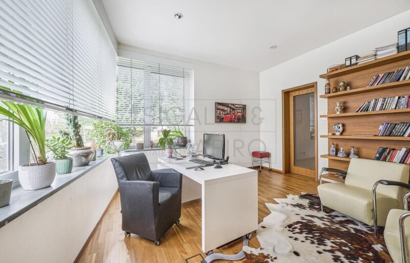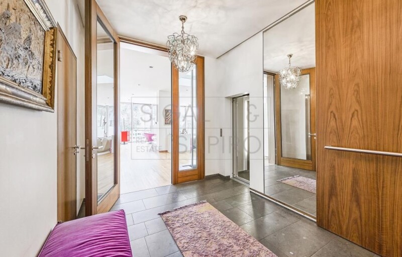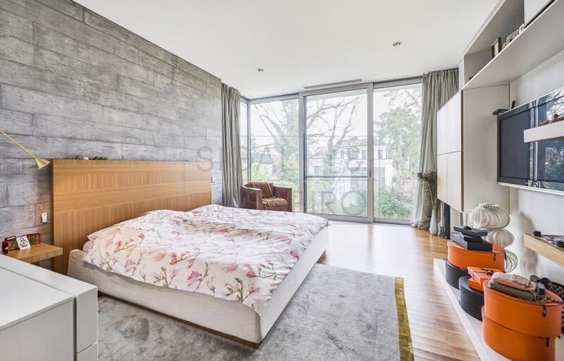 The property on offer is an exclusive villa built in 2006. The villa has a spacious entrance area with cloakroom on the ground floor, a very large living and dining area with open kitchen and access to the terrace, a study, a guest toilet and a storage room. On the upper floor there are four bedrooms, two dressing rooms and two bathrooms. In addition to various technical and storage rooms, the basement houses a guest/granny flat, a large swimming pool with garden access, a sauna, a shower and a double garage. The villa is located in one of the most exclusive villa locations in Berlin. Excellent shopping opportunities can be found around the nearby Roseneck. Daycare centers and renowned schools are within walking distance. Numerous green spaces and parks as well as the nearby Grunewald with its chain of lakes, the famous hunting lodge and the largest dog walking area in Europe offer a high recreational value. Berlin's most exclusive tennis club, Blau-Weiss, is in the immediate vicinity. From Schmargendorf you can reach the City West and the Kurfürstendamm with its luxury shops, numerous cafes and restaurants in just a few minutes. In addition, you have excellent transport links to the Berlin government district, the Berlin airports, the main train station as well as to Potsdam and the surrounding area of Berlin with its diverse and varied excursion options. - large terrace (approx. 60 m²) with large awning and south-facing garden - exclusive Bulthaup fitted kitchen with appliances from Miele, Gaggenau and Imperial - luxurious bathrooms - open fireplace - natural wood floors (American walnut) - underfloor heating and additional convectors - cooling ceilings on the ground and upper floors - alarm system, video surveillance - burglar-proof windows with electric sun protection and mosquito nets - electric curtains - ventilation flaps for automatic ventilation throughout the house - sound system throughout the house - elevator - swimming pool, KLAFS sauna, solarium ceiling, video projector in the swimming pool room - underground garage for two cars and another garage on the property - landscaped, secluded property.