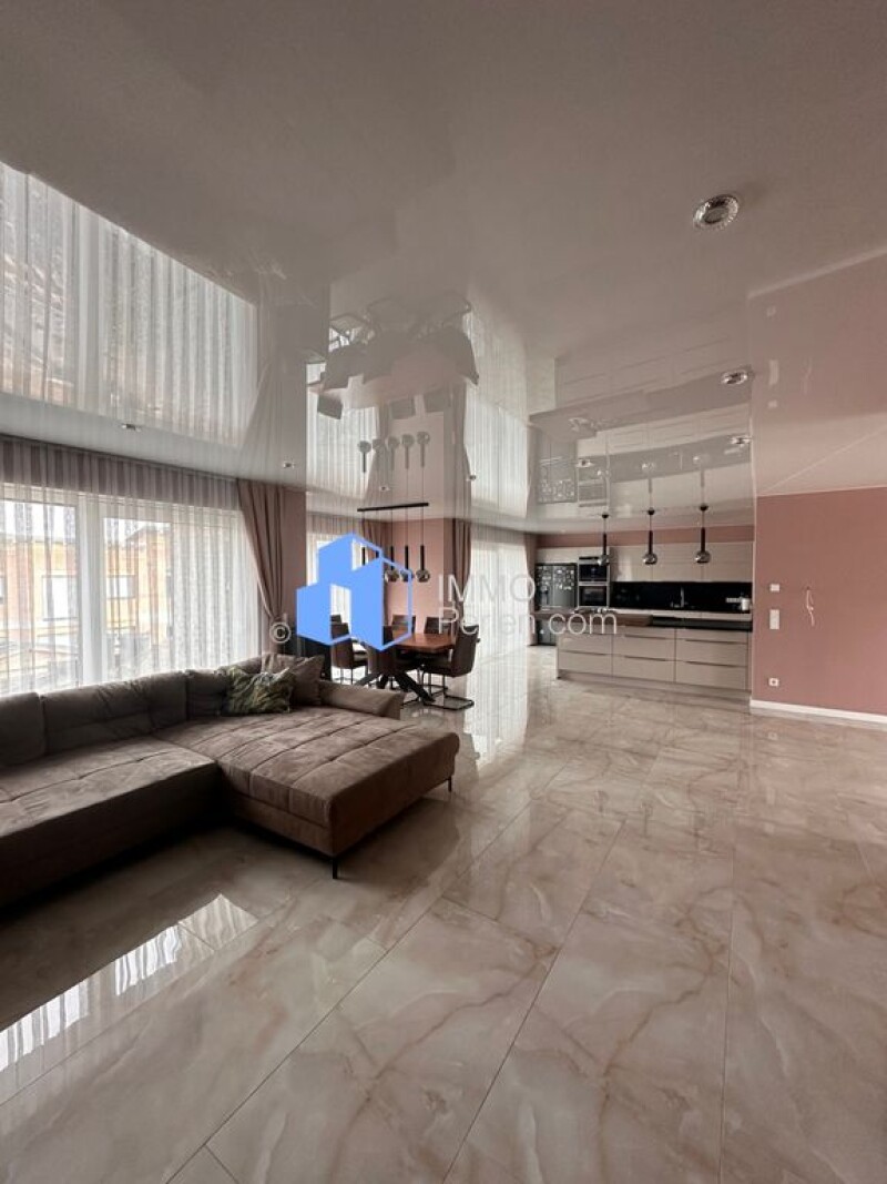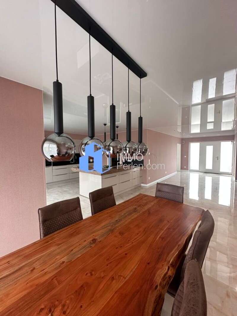 For sale is a new town villa built in 2021, which scores with superlatives in both energetic and aesthetic terms. The property is located in the new development area not far from the Westberg on a 660 m² plot. The single-family house, built in solid construction, impresses with its modern Bauhaus style even at first glance. With a KFW standard of 40+, the property offers the latest technology (heat pump). The entrance on the ground floor leads you into the inviting hallway with practical storage options for your wardrobe, etc. The hallway is kept open and already reflects the airy and light-flooded character of this beautiful property. The heart of the ground floor is the L-shaped living / dining / kitchen area with large glass fronts and good light incidence. The high-quality and fully equipped fitted kitchen with counter is included in the purchase price. From the dining-living area and kitchen you have triple access to the large sun terrace where you can enjoy your well-deserved free time to the fullest. The adjacent garden area scores with extensive lawns and generous play areas (sandpit / swings) for your children. The dream home on the ground floor is completed by a guest toilet with shower in a modern design, a bright office / guest room and the technical room / utility room. From here you also have direct access to the double garage. A stone staircase leads you to the upper floor, which welcomes you with a gallery-like hallway area. Three children's rooms and a bedroom with a dressing room underline the opulent, light-flooded space on the upper floor. The large daylight bathroom with a free-standing tub, floor-level walk-in shower and double sink, decorated in marble tile design, looks very classy. Some of the exterior work still has to be completed by the new owner according to his own wishes. The Immoperlen team is happy to be available for viewings and to answer any questions you may have! This property is located in a quiet and very popular residential area, not far from the Westberg. All facilities for daily needs - including large supermarkets, doctors, health food stores, pharmacies, schools and kindergartens - are within walking distance. The connections to Kassel are excellent. Kassel-Calden Airport, Warburg and the surrounding area are easily accessible by public transport - including the Regiotram - and by car. You can reach the center of Kassel as well as the ICE train station with the Regiotram RT 4 in 30 minutes. - KFW Standard 40+ - Underfloor heating throughout - Heat pump (Viessmann) - Hipped roof - Marble-look tiles (60x120cm) - Electric shutters - Painted stretch ceilings in the living-dining-kitchen area and on the upper floor bathroom & hallway - Utility room - Internet & TV connection in the living area, bedrooms and office - Bathroom on the ground floor with walk-in shower & toilet - Bathroom on the upper floor with toilet, free-standing tub & walk-in shower - Office with separate toilet & underfloor heating and own entrance outside - Office/guest room on the ground floor - 3 children's rooms - Bedroom with dressing room - High-quality Nobilia kitchen with Siemens appliances, Quooker faucet and fully automatic coffee machine - Insulated double garage (approx. 50m²) MONEY LAUNDERING: As a real estate agency, Immoperlen.com is registered according to Section 2 Paragraph 1 No. 14 and Section 11 Paragraph 1, 2 of the Money Laundering Act (GwG) obliges us to establish and check the identity of the contractual partner when establishing a business relationship, or as soon as there is a serious interest in carrying out the property purchase contract. To do this, we need to record the relevant data from your ID card (if you are acting as a natural person) in accordance with Section 11 Paragraph 4 of the GwG - for example by means of a copy. For a legal entity, we require a copy of the commercial register extract showing the beneficial owner. The Money Laundering Act stipulates that the broker must keep the copies or documents for five years. As our contractual partner, you also have a duty to cooperate in accordance with Section 11 Paragraph 6 of the GwG. LIABILITY: We would like to point out that the property information, documents, plans, etc. that we pass on come from the seller or landlord. We therefore do not accept any liability for the accuracy or completeness of the information. It is therefore the responsibility of our customers to check the property information and details contained therein for accuracy. All property offers are non-binding and subject to errors, prior sale and rental or other interim utilization. OUR SERVICE FOR YOU AS AN OWNER: If you are planning to sell or rent your property, it is important for you to know its market value. Have the current value of your property professionally assessed free of charge and without obligation by our property valuation experts. Final energy requirement: 17.00 kWh/(m²·a).