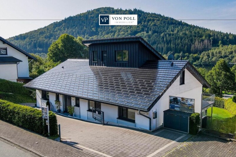 This spacious holiday home with a living space of approx. 229 m² and a plot of approx. 1,080 m² was built in 2013 and is in very good condition. The property impresses with its solid and efficient wooden construction and a spacious sun terrace with a lake view, which invites you to relax and enjoy. The high-quality equipment includes wood-aluminum windows, a modern fitted kitchen and a bedroom made of solid pine. The pine not only creates a cozy atmosphere, but also promises health benefits. A gallery on the upper floor contributes to the open and inviting atmosphere of the house. Another highlight is the spacious, barrier-free wellness bathroom with whirlpool and sauna. Here, too, you can enjoy the wonderful view and have direct access to the terrace. The building services with central heating in combination with efficient solar thermal energy are located in the basement. There are also two double garages available here. One of the two garages has been converted into a playroom and thus offers plenty of space for leisure activities in addition to the garden area, even in bad weather. Overall, this property offers the highest level of living comfort in a fantastic location. In addition, the holiday home has a very successful and established marketing and rental concept, which can be adopted including regular guests. This therefore offers a lucrative investment opportunity. Have we aroused your interest? Then we look forward to hearing from you! Whether spring, summer, autumn or winter - the state-approved climatic health resort of Niedersfeld refreshes you from head to toe. It lets you forget everyday life and takes you into the endless green of the land of 1000 mountains. Regain your strength. Hike, take a spa treatment, do sports, relax and enjoy nature and hospitality that comes from the heart. In just a few minutes' walk you can reach the Hillebachsee with sports activities such as inline skating, swimming and a water skiing facility. The center of Winterberg with its diverse shops, restaurants, doctors and schools can be reached in just a few minutes by car. Winterberg and its districts are attractive to holidaymakers all year round. In the winter months, the region is known for its beautiful ski area and the biathlon stadium, among other things; in the other seasons, numerous hiking and cycling trails attract guests from home and abroad. Discover the Sauerland at its best: • Cycling on the 37 routes of the Bike Arena Sauerland or in the bike park • Nordic walking • Golfing • Climbing • Hiking • Horse riding • Golfing • Paragliding • Playing tennis • Fishing • Skiing • Snowboarding • Cross-country skiing • Water skiing • Swimming From Winterberg, various bus and train lines quickly take you to the rest of the Sauerland, Willingen in Hesse, the Ruhr area and Kassel. • Fitted kitchen • Gallery with reading corner • Wood-aluminum windows • Lake view • Bedroom made of pine wood • Solid wood construction • Fully furnished • Wellness bath with whirlpool and sauna • Ground floor and basement barrier-free • Wall box • Established rental concept can be taken over including regular guestsAn energy requirement certificate is available. This is valid until August 14, 2033. Final energy requirement is 37.00 kWh/(m²*a). The main energy source for heating is gas. The year the property was built according to the energy certificate is 2013. The energy efficiency class is A. MONEY LAUNDERING: As a real estate agency, von Poll Immobilien GmbH is obliged according to Section 2 Paragraph 1 No. 14 and Section 11 Paragraphs 1 and 2 of the Money Laundering Act (GwG) to establish and verify the identity of the contractual partner when establishing a business relationship, or as soon as there is a serious interest in executing the property purchase contract. For this purpose, it is necessary that we record the relevant data from your ID card (if you are acting as a natural person) - for example by means of a copy. For a legal entity, we require a copy of the commercial register extract from which the beneficial owner can be identified. The Money Laundering Act stipulates that the broker must keep the copies or documents for five years. As our contractual partner, you also have a duty to cooperate in accordance with Section 11 Paragraph 6 of the GwG. LIABILITY: We would like to point out that the property information, documents, plans, etc. that we pass on come from the seller or landlord. We therefore do not accept any liability for the accuracy or completeness of the information. It is therefore the responsibility of our customers to check the property information and details contained therein for accuracy. All property offers are non-binding and subject to errors, prior sale and rental or other interim use. OUR SERVICE FOR YOU AS AN OWNER: If you are planning to sell or rent your property, it is important for you to know its market value. Have the current value of your property professionally assessed by one of our property specialists free of charge and without obligation. Our nationwide and international network enables us to bring sellers or landlords and interested parties together in the best possible way. Final energy requirement: 37.00 kWh/(m²·a).