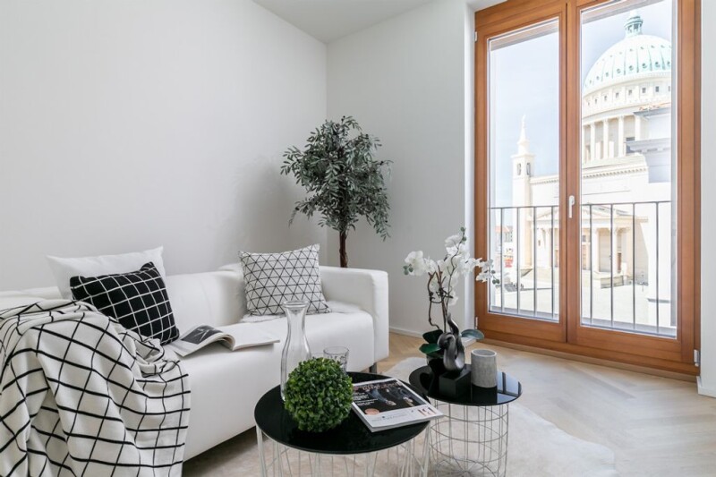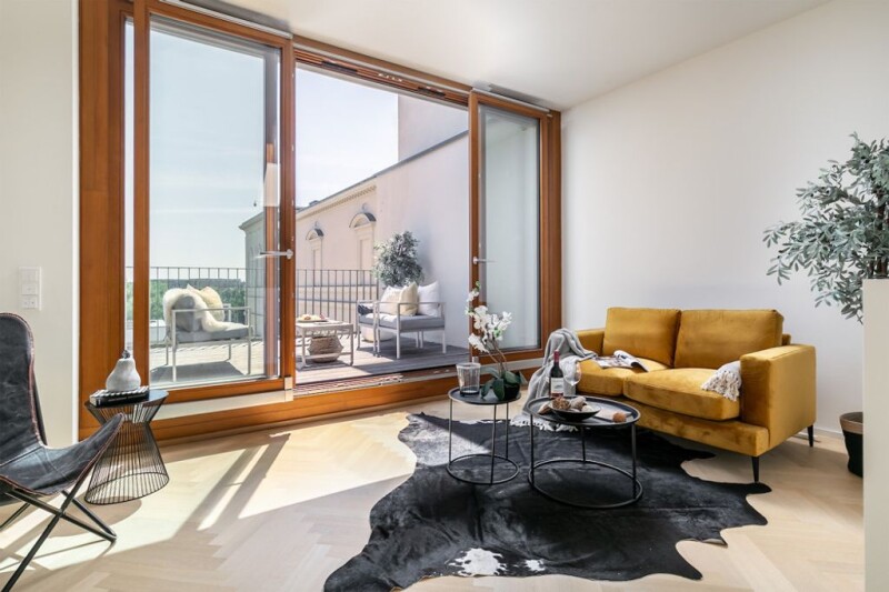 Under the project title "Potsdamer Mitte", the reconstruction of the ensemble around the Old Market, which was destroyed in World War II, is taking place. The newly built city palace, the Palais Barberini, in which the Barberini Museum opened in 2017, the Old Town Hall and the Nikolaikirche are just some of the imposing buildings that represent the historic Potsdam center on the Old Market along the Alte Fahrt. The 5-story new building in the style of a modern townhouse was newly built in 2019 and houses 6 condominiums with luxurious furnishings. The maisonette penthouse apartment with approx. 127 m², which is spread over 2 levels, is the largest residential unit in the building. Access to the apartment is via the 3rd floor, which can be reached by elevator. Here there is an open living/dining area with a high-quality Bulthaup fitted kitchen. In addition to Miele built-in appliances and a Bora hob, it is equipped with a Quooker and an integrated wine cooler. Artistic English floor tiles were laid in the kitchen area. The dining area, hallway and guest rooms are covered with oak herringbone parquet. From the living/dining area, floor-to-ceiling sliding windows provide access to a tastefully tiled loggia and balcony. From here you can enjoy a wonderful view of the Friendship Island and the Alte Fahrt. A staircase with filigree metal stringers leads to the top floor (penthouse) of the apartment. The open-plan living area offers access to an approx. 17 m², south-facing roof terrace with a fantastic view. A practical storage room offers valuable storage space and at the same time a privacy screen. The modern bath has been impressively integrated into the architecture and has a ceiling height of more than 5 meters. The well-proportioned bedroom faces the old market and offers a unique view of St. Nicholas Church and the surrounding historical buildings. All rooms are heated with underfloor heating. There are shading systems on the outside windows, some with electrical controls. Sockets with a speed DSL connection (1 GBit/s) are available in all rooms. A storage room with a size of approx. 5 m² is available in the basement. The apartment was completed in 2021 and is available for first occupancy. Potsdam, the state capital of Brandenburg with around 180,000 inhabitants, is a cultural city of international standing and an important business and service location. The city offers a spectacular baroque city center and excellent residential areas. The immediate proximity to Berlin ensures transport links to the federal capital. Potsdam has good connections to the surrounding motorways. Berlin's BER airport can be reached by car in 45 minutes. Potsdam city center offers many sights and a wide range of cultural activities. There are many small cafes, restaurants and shops around Brandenburger Strasse. Historical highlights include the Dutch Quarter, the Nauener Tor and the new city palace. All everyday necessities are within walking distance. The connection to the public transport network is also excellent. Potsdam city center is just a few minutes away on foot. Tram and bus stops are in the immediate vicinity and offer a direct connection to Potsdam city center and the main train station, as well as a connection to the Berlin S-Bahn network and the regional train. The surrounding motorway junctions to the A115 and A10 (Berlin Ring) can be reached in just a few minutes by car. - Underfloor heating - Parquet flooring - Bulthaup fitted kitchen - Floor-to-ceiling windows - Loggia and roof terrace - Balcony - Elevator - Guest shower room - Bath - Shading system (partly electric) - Speed DSL 1 GBit/s - Cellar roomAn energy requirement certificate is available. This is valid until July 1, 2030. Final energy requirement is 66.00 kWh/(m²*a). The main energy source for heating is district heating. The year of construction of the property according to the energy certificate is 2019. The energy efficiency class is B. Final energy requirement: 66.00 kWh/(m²·a).