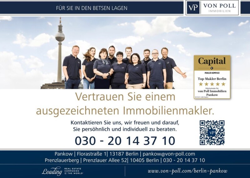 Welcome to your future home! This unique property from the 1930s not only offers a generous living space of approx. 195 m², but also the possibility of real division, so that the rear part of the property can be built on. The park-like property extends over an impressive approx. 1,303 m². The rear lawn with a wonderfully landscaped garden, accessible via the veranda on the ground floor, invites you to relax and offers enough space for your leisure activities. This stately, fully basemented single-family house with villa character impresses with its typical 1930s charm. It has parquet and wooden floors, as well as a fireplace, which creates a cozy atmosphere in the cooler seasons. You can reach all levels via a spacious entrance with a central staircase. On the ground floor there is the spacious living area with a historic sliding door in the transition to the spacious dining room with an open kitchenette, ideal for convivial evenings with family and friends. Another living area with fireplace and access to the winter garden with a small guest toilet complete the space on offer. From the veranda you can go directly into the beautiful garden. The upper floor offers a large bedroom, two further living rooms and a bathroom. The balcony is accessible from both the bedroom and the living rooms and offers a wonderful view of the property. The unfinished attic represents a living space reserve and can be designed and used according to your wishes. The basement of the house offers plenty of space with a standing height of approx. 2.30 m. The room layout in the basement includes a complete granny flat, a hallway, a laundry room with a basement room, a sauna with shower and an additional toilet. The granny flat consists of a bathroom, a kitchen with dining area and a bedroom/living area. In 1998, extensive renovations were carried out, including the modernization of the basement apartment, the opening of the staircase area and the installation of a sauna in the basement. This charming property currently offers six living rooms with a living space of approx. 195 m² and a usable space of approx. 120 m². It impresses with its spacious layout and the wide range of possible uses. Do not hesitate and arrange a viewing today. Experience for yourself the charm and possibilities that this unique property offers. We look forward to introducing you to your new home! Rosenthal belongs to the Pankow district and is located in the northeast of Berlin. Due to the spacious and open construction that can be found in the district, it is one of the city's preferred, family-friendly residential areas. The neighboring district of Niederschönhausen is a preferred residential area due to its parks and upscale residential areas. Old buildings still predominate in the large single-family home areas, the small villa districts and the apartment buildings, most of which date from the Wilhelminian period. There are also numerous new buildings in the form of city villas. The Brosepark, Niederschönhausen Castle Park, Bürgerpark and Schönholzer Heide invite you to take walks, relax and get fit. Further north is the Botanical Garden with its impressive greenhouses and botanical rarities. The newly built property is located in a quiet, small residential street with modern single-family homes. There is no through traffic. At first glance, you can imagine how pleasant and relaxed life could be here. The infrastructure in northern Pankow is good. Schools, daycare centers and other public facilities are available in sufficient numbers, as are various shops and service providers. Bus stops for lines 122 and 124 and tram line M1 are within walking distance. The lines offer connections to various underground and S-Bahn stations, with the Wilhelmsruh S-Bahn station (about 2.5 km south) being the closest, which can be reached with line 122. The journey time to the center of Berlin is about 25 minutes. It is about 15 minutes to the Pankow motorway feeder road (A114).The property is located in Berlin-Pankow in the Rosenthal district in a charming part of the capital, embedded in a quiet, tree-lined street. The area is characterized by a peaceful atmosphere, which is enhanced by the surrounding green spaces and parks.- divisible, large park-like property - historic house with villa character - fireplace room with small veranda and garden access - parquet and plank floors, clinker elements. Sliding door in the living room - complete renovation in 1998 including conversion of the basement into a granny flat - expandable atticAn energy requirement certificate is available. This is valid until December 18, 2033. Final energy requirement is 268.00 kwh/(m²*a). The main energy source for heating is gas. The year the property was built according to the energy certificate is 1996. The energy efficiency class is H. MONEY LAUNDERING: As a real estate agency, von Poll Immobilien GmbH is obliged according to Section 2 Paragraph 1 No. 14 and Section 11 Paragraphs 1 and 2 of the Money Laundering Act (GwG) to establish and verify the identity of the contractual partner when establishing a business relationship, or as soon as there is a serious interest in implementing the property purchase contract. To do this, it is necessary that we record the relevant data from your ID card (if you are acting as a natural person) in accordance with Section 11 Paragraph 4 GwG - for example by means of a copy. For a legal entity, we require a copy of the commercial register extract showing the beneficial owner. The Money Laundering Act stipulates that the agent must keep the copies or documents for five years. As our contractual partner, you also have a duty to cooperate in accordance with Section 11 Paragraph 6 GwG. LIABILITY: We would like to point out that the property information, documents, plans, etc. we pass on come from the seller or landlord. We therefore do not accept any liability for the accuracy or completeness of the information. It is therefore the re