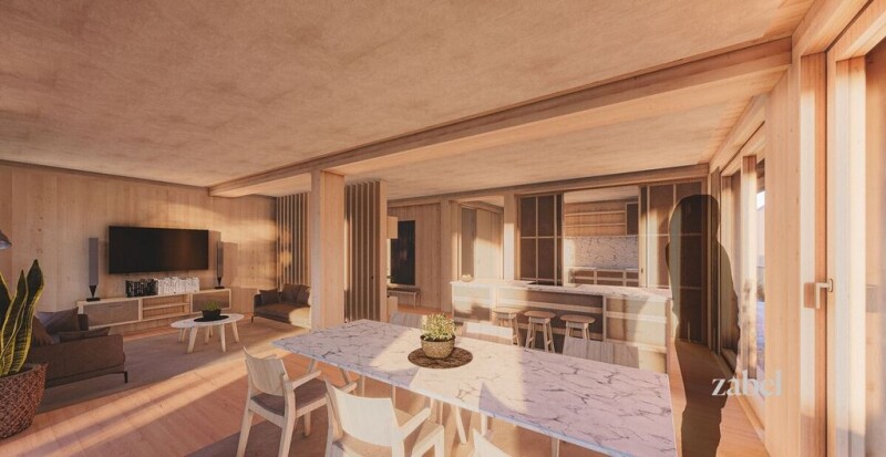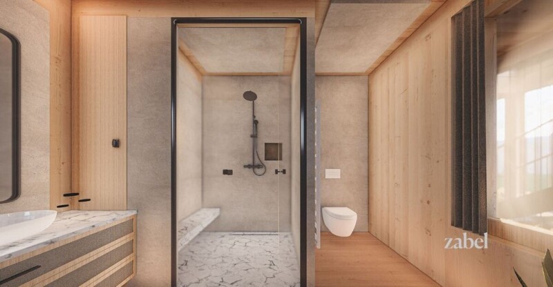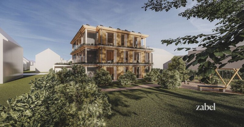 The detached, solid-timber house "Wilhelm & Raabe" is being built on a quiet side street in Milbertshofen, surrounded by predominantly two-story residential buildings. The street-facing building features a landscaped front garden, a modern pavilion providing access to the underground parking elevator, and the narrow wooden side façade with dynamically positioned windows in portrait and landscape formats. The building opens to the west, facing the garden. This is where the weather-protected, sun-drenched loggias and terraces extend into the building at varying depths. The deep roof overhang on each floor will be planted with greenery, ensuring a harmonious transition between nature, house, and apartment. Floor-to-ceiling windows allow plenty of natural light into the welcoming living spaces. Panoramic windows to the west offer views of the landscaped outdoor area. Tasteful textile screens ensure privacy here as well. The "Wilhelm & Raabe" project is located between the Milbertshofener Straße playground, Petuelpark, and the north-south green corridor between Ricarda-Huch-Straße and Christoph-von-Gluck-Platz. Within walking distance, you'll find fresh croissants at "Le Petit," a REWE supermarket, the Domagk pharmacy, and crisp pretzels from the Wimmer bakery. The U2 subway line will take you into the city center—it's just four stops to Königsplatz. Alternatively, you can reach the English Garden in ten minutes by bike. Hardly any other district in Munich has developed as continuously and discreetly over the past decades as Milbertshofen. The direct proximity and connection to the upscale and hip Schwabing district alone has led to a sustained improvement in the location, and as a result, many improvements have been made to the quality of life. • Solid wood house • Climate-friendly new building (KfN) – KfW 40 • Innovative clay ceilings for climate control • High-quality solid wood floors • Wall surfaces made of spruce and fir wood • Geothermal energy and photovoltaic system • Open living, cooking, and dining area with generous windows • XXL roof terrace with approx. 29 m² • Bathroom 1 and bathroom 2 with natural light, shower, and brand-name sanitary facilities • 2 rooms, one of which has access to the roof terrace • Storage room in the apartment • Office area • Floor-to-ceiling windows (mostly) • Elevator.