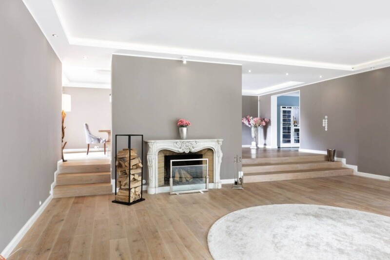 Welcome to this impressive luxury villa that meets the highest standards in every respect. The villa underwent a comprehensive renovation in 2018 and has a total area of around 515 square meters of living space as well as an additional cellar and usable space of around 160 square meters. Set on an impressive 3,552 square meter plot that enjoys sunshine all day long, this property stands in a quiet residential area surrounded by single-family homes and gardens. As you enter the ground floor of this villa, you are immersed in a world of modern luxury. The high-quality interior is a testament to quality and sophistication, from the luxurious interior walls to the artfully designed ceiling elements. Suspended ceilings with subtle lighting elements create an inviting atmosphere, while the generous ceiling spans convey a feeling of spaciousness. Characteristic Belgian street tiles adorn the floor, and the modern kitchen adds a further accent. Luxury and comfort extend throughout the home, with a smart home system and intelligent automatic underfloor heating for cozy warmth. A sophisticated alarm system ensures your security and connects you directly to a renowned security and locking company in the event of an alarm. The villa has various bathrooms and guest toilets, all of which are equipped with high-quality fittings and stylish design. This is your new dream villa where luxury, style, comfort and security perfectly merge to offer you the ultimate living experience. The upper floors welcome you with an enchanting atmosphere, an extremely spacious master bedroom of over 100 square meters, including a luxurious bathroom with a free-standing bathtub and two charming children's rooms. The attic is fully developed and offers two walk-in closets. There are also additional children's rooms available here. The slate roof gives the building a timeless elegance. Triple-glazed and soundproof windows create a quiet and cozy atmosphere, while external blinds ensure perfect light regulation and privacy. Here you will experience the highest level of comfort in the midst of this architectural masterpiece - a place where you can truly feel at home. The fully developed basement area is tiled and not only offers a large oil heating system with a modern condensing boiler from Junkers from 2018, but also a wealth of inspiring rooms. Spacious changing rooms, a calming panic & safe room, a well-equipped fitness area and modern toilet facilities contribute to the exceptional comfort. But that's not all - the special thing about this villa is that all rooms can be air-conditioned to always offer you an optimal indoor climate. The majestically landscaped driveway leads to open carports and an impressive underground double garage in the basement area, which can accommodate and safely store two large vehicles. A total of 5 vehicles fit in the large carports, and all preparations for charging via wallbox have already been made. This means that a total of 7 parking spaces are available for cars. The garden of this villa radiates impressive beauty and fits the house perfectly. Artfully designed gardens and a wealth of inviting outdoor areas and terraces invite you to linger. An automatic irrigation system takes loving care of the plants, while robot lawn mowers keep the lawn in pristine condition. The spacious pool (12 x 6 meters) can be heated automatically and offers the highest level of comfort with its self-regulating chlorine system and advanced filter technology. Two modern garden houses with thatched roofs enrich the ambience and create additional charm. Numerous places invite you to enjoy nature to the fullest and relax in peace. Overall, this luxurious villa embodies a perfect symbiosis of classic elegance and modern comfort. From the stately driveway to the lavishly designed interiors, this residence offers an exceptional living ambience for those seeking the best of the best.
