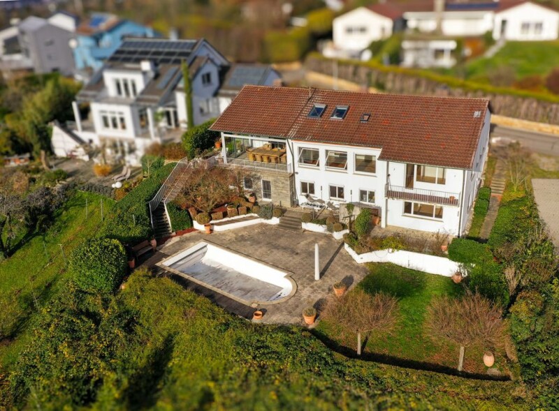 +++ Please understand that we can only answer inquiries with FULL personal information (complete address, telephone number and email) +++ Spacious single-family house with 2 residential units or 1 residential and 1 office unit, including a pool in an exceptional panoramic location. The spacious property is located on a plot of approx. 1169 m² in a quiet residential area with a living space of approx. 362 m². It has a terrace, a garden, a pool, a double garage and a balcony. The large branded kitchen is equipped with high-quality Miele appliances and offers plenty of space for cooking and enjoying. In front of the kitchen, across the entire width, there is a hallway with additional wall cupboards from the same furniture range. These offer a lot of additional storage space. The open floor plan offers plenty of room for creative and spatial design options. The main entrance takes you directly to the ground floor, which consists of a modern luxury kitchen, the entrance hall, four rooms, bathroom, guest toilet and balcony. Another highlight is the winter garden with an open fireplace, which offers an indescribable view through its large, high and floor-to-ceiling sliding doors. The staircase takes you to the top floor, which has two rooms. There is also a bathroom with shower and an attic that can still be expanded. The 147 sqm garden floor, which can be accessed via the side staircase outside or inside the house, consists of a spacious granny flat/office space. Here you will find 4 rooms and a very large room with an open kitchen. There is also a bathroom and a separate guest toilet. There is also a storage room, 3 cellar rooms and the technical room on this level. The municipality of Eningen unter Achalm lies east of Reutlingen. It is located between Achalm and the Albtrauf and belongs to the Neckar-Alb region and the Stuttgart metropolitan region. Neighboring municipalities include Reutlingen, Metzingen and Pfullingen. In the immediate vicinity of the house there are shops for everyday needs, as well as leisure activities such as the Schillerpark or the forest outdoor pool. In addition to the music and singing club, cultural life is also shaped by the TSV & SKV club in Eningen. Several doctor's offices provide medical care for the residents. The location of the kindergartens, which can be reached on foot from the property, is also worth mentioning. Directly from the house you can also go on lovely walks or bike rides through nature to the Alb, the Achalm, the Arbachtal or along the "schönen Weg". Very good connections to Reutlingen: The bus stops "Mörikestraße", line 11 and "Spitzwiesen", line 1 can be reached in a few minutes on foot - both go directly to the main station in Reutlingen in 10 minutes. Local public transport is provided by the Neckar-Alb-Donau network. It takes less than 5 minutes to get to Reutlingen and Pfullingen by car and 20 minutes to Tübingen. The car-free cycle path to Reutlingen and Pfullingen is also just a few hundred meters from the house. Stuttgart main station can be reached by public transport, bus, or train in 45 minutes. By car, according to Google Maps, in 48 minutes. The newly built tunnel allows you to arrive quickly at the international airport in Leinfelden-Echterdingen in just 30 minutes by car. - Parquet and tiles - large windows - terraces - spacious garden with pool - garage with 2 spaces - balcony - new luxury kitchen with high-quality Miele appliances - winter garden with large window front, fireplace and panoramic view - built-in cupboards - storage room, technical room and basement rooms - 2 residential units - expansion reserve An energy requirement certificate is available. This is valid until August 19, 2034. Final energy requirement is 185.33 kwh/(m²*a). The main energy source for heating is gas. The year the property was built according to the energy certificate is 1962. The energy efficiency class is F. There is an energy requirement certificate. This is valid until August 19, 2034. Final energy consumption is 185.33 kWh/(m²*a). The main energy source for heating is natural gas. The year the property was built according to the energy certificate is 1962. The energy efficiency class is F MONEY LAUNDERING: As a real estate agency, von Poll Immobilien GmbH is obliged under Section 2 Paragraph 1 No. 14 and Section 11 Paragraphs 1 and 2 of the Money Laundering Act (GwG) to establish and verify the identity of the contractual partner when establishing a business relationship, or as soon as there is a serious interest in carrying out the property purchase contract. To do this, it is necessary for us to record the relevant data from your ID card (if you are acting as a natural person) - for example by means of a copy. For a legal entity, we require a copy of the commercial register extract showing the beneficial owner. The Money Laundering Act stipulates that the broker must keep the copies or documents for five years. As our contractual partner, you also have a duty to cooperate in accordance with Section 11 Paragraph 6 of the GwG. LIABILITY: We would like to point out that the property information, documents, plans, etc. we pass on come from the seller or landlord. We therefore assume no liability for the accuracy or completeness of the information. It is therefore the responsibility of our customers to check the property information and details contained therein for accuracy. All property offers are non-binding and subject to errors, prior sale and rental or other interim utilization. OUR SERVICE FOR YOU AS AN OWNER: If you are planning to sell or rent your property, it is important for you to know its market value. Have the current value of your property professionally assessed by one of our property specialists free of charge and without obligation. Our nationwide and international network enables us to bring sellers or landlords and interested parties together in the best possible way. Final energy requirement: 185.33 kWh/(m²·a).