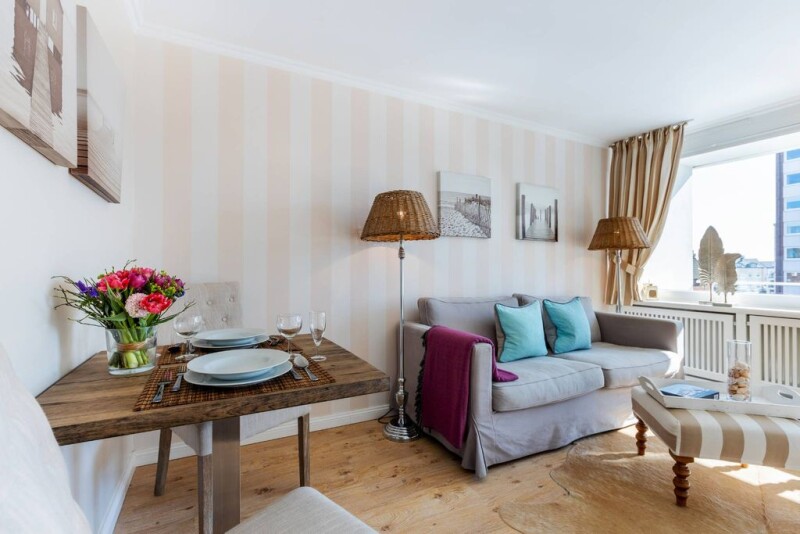 For sale is a cozy nest of approximately 36 sqm with a balcony facing the sunny east, centrally located in Westerland, yet providing a quiet oasis amidst the lively bustle of the city. The interior of the living and sleeping area features high-quality single beds with built-in wardrobes, ensuring ultimate relaxation while creating an inviting atmosphere. The remaining living room furnishings are of premium quality, offering optimal comfort. Listen to the sound of the waves as you relax on your balcony with the finest North Sea air. The fully equipped kitchenette is seamlessly integrated into the apartment. The modern bathroom is equipped with a bathtub and two sinks, providing a lovely ambiance. The apartment is already successfully established in holiday rentals and has its own land register sheet. The energy certificate is available for inspection. Let yourself be convinced by this property and arrange a viewing appointment with us! The energy certificate is available for inspection. Find restful sleep in the two built-in single beds. Like the rest of the living room furnishings, they are crafted from high-quality wood, providing an extra level of comfort. The kitchen, along with the rest of the furnishings, is space-saving and seamlessly integrated into the apartment. The bright bathroom, in addition to a well-maintained decor, offers two sinks and a bathtub. Here too, the available space has been maximized to its fullest potential – throughout the apartment, the use of light colors contributes to a sense of spaciousness. The apartment has its own land register sheet and is successfully established in holiday rentals.