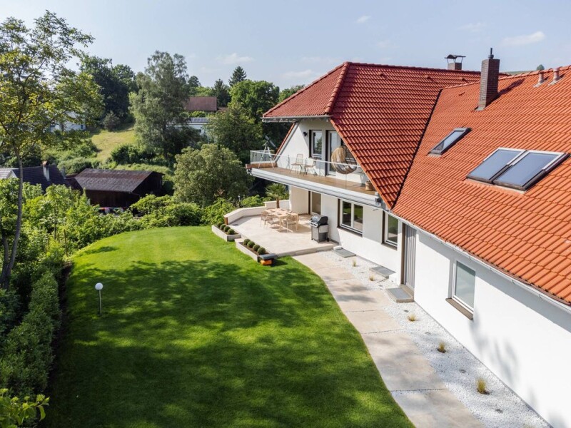 Welcome to the Villa Goldbach. The villa with granny apartment is located in a quiet and picturesque part of Überlingen on Lake Constance. Despite the quiet location, the town center is within easy walking distance and offers numerous shopping and leisure opportunities. The lakeside location is a particular highlight: You can enjoy the clear waters of Lake Constance just 200 meters away. A new lido was recently built directly on the lake which impresses with its modern design and spacious facilities. From the villa, you can enjoy the view of the lake and the surrounding landscape to the full and relax. This exclusive property was extensively renovated in 2022 and impresses with its inviting dining area with lake view. This room impresses with generous windows, a cozy wood-burning stove and a cozy fireplace. The high-quality furnishings are continued in the timelessly designed living area and throughout the house. With a total of 13.5 rooms, a granny apartment, four bathrooms and six parking spaces, this property combines aesthetic design, luxury and practical amenities to create an exclusive living ambience.