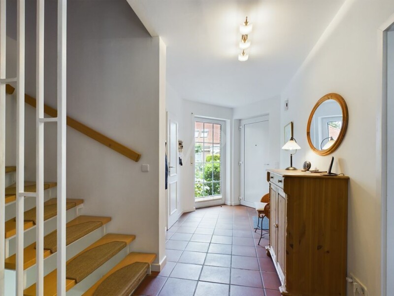 For sale is a semi-detached house built in 1991 on a plot of land of around 390 m² in solid construction. The house is in a prime location in Großburgwedel within walking distance of the center. The semi-detached house has a living space of around 132 m² and has a full basement. The property is in very good condition and has been continuously modernized. Among other things, the bathroom on the upper floor was renovated in 2015 and the gas heating was replaced in 2006. The hot water is supported by solar thermal energy. On the ground floor there is the spacious kitchen with fitted kitchen, a guest toilet with shower and the living / dining room with large, floor-to-ceiling lattice windows with access to the terrace. High-quality oak parquet flooring was laid in the living room in 2013, and a fireplace from 2007 provides pleasant warmth in the cold season. The curved staircase with wooden steps leads from the basement to the upper floor with three beautiful rooms and the bathroom, which was modernized in 2015, and further into the converted attic. In the full basement, in addition to the boiler room, the utility room with washing machine connection and a storage room, there are two further rooms that can be used for hobbies and workshops. The terrace faces southwest and offers a beautiful view of the lovingly landscaped garden. The property also has a garden tool shed as additional usable space and two covered parking spaces. All in all, a wonderful new home for families according to the motto "move in and feel good". Let the pictures inspire you and arrange a viewing appointment! The town of Burgwedel, with a total of around 22,000 inhabitants, located northeast of the state capital Hanover, is one of the most sought-after residential areas in the entire Hanover region with all of its districts. The semi-detached house is located in the Großburgwedel district, one of the top locations in the northern "suburbs" of the Lower Saxony state capital Hanover. With around 10,200 inhabitants, Großburgwedel is the administrative seat and infrastructural center of the town of Burgwedel. All types of schools, kindergartens, various sports clubs, an outdoor pool, a wide variety of restaurants and a shopping mile are available. The Großburgwedel clinic is located here. The Großburgwedel district is only 20 km or 17 minutes by train from the center of the state capital Hanover. The train station connects Großburgwedel directly to Hanover and Celle. The town also has a direct connection to the A7 motorway. - Fitted kitchen - Lattice windows with external roller shutters - Parquet flooring in the living room newly laid in 2013 - Fireplace from 2007 - Parquet flooring on the upper floor newly laid in 2010 - Bathroom on the upper floor renovated in 2015 - Converted attic - Full basement - Solar thermal energy for hot water preparation - Gas heating renewed in 2006 - Garden tool shed - Double carport with tool roomAn energy requirement certificate is available. This is valid until January 5, 2032. Final energy requirement is 93.00 kWh/(m²*a). The main energy source for heating is gas. The year the property was built according to the energy certificate is 2006. The energy efficiency class is C. MONEY LAUNDERING: As a real estate brokerage company, von Poll Immobilien GmbH is obliged according to Section 2 Paragraph 1 No. 14 and Section 11 Paragraphs 1 and 2 of the Money Laundering Act (GwG) to establish and verify the identity of the contractual partner when establishing a business relationship, or as soon as there is a serious interest in implementing the property purchase contract. To do this, it is necessary that we record the relevant data from your ID card (if you are acting as a natural person) - for example by means of a copy. For a legal entity, we require a copy of the commercial register extract showing the beneficial owner. The Money Laundering Act stipulates that the broker must keep the copies or documents for five years. As our contractual partner, you also have a duty to cooperate in accordance with Section 11 Paragraph 6 of the GwG. LIABILITY: We would like to point out that the property information, documents, plans, etc. that we pass on come from the seller or landlord. We therefore do not accept any liability for the accuracy or completeness of the information. It is therefore the responsibility of our customers to check the property information and details contained therein for accuracy. All property offers are non-binding and subject to errors, prior sale and rental or other interim use. OUR SERVICE FOR YOU AS AN OWNER: If you are planning to sell or rent your property, it is important for you to know its market value. Have the current value of your property professionally assessed by one of our property specialists free of charge and without obligation. Our nationwide and international network enables us to bring sellers or landlords and interested parties together in the best possible way. Final energy requirement: 93.00 kWh/(m²·a).
