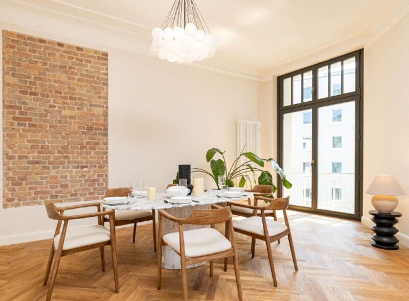 Luxury apartment in the heart of Berlin! Located in Berlin's popular neighborhood, this magnificent residence offers a unique opportunity to own an exclusive apartment. Unit 13+19 is located on the 5th floor, in the front part of the building, offering stunning city views. With a total surface area of 201.24 m², this apartment has 4 spacious bedrooms, ideal for accommodating a family or creating additional spaces according to your needs. You will also find a bathroom with toilet, for more comfort. Two balconies provide a private outdoor space where you can relax and enjoy the surrounding cityscape. The elevator facilitates access to your apartment, making every move easy and comfortable. This property was designed with high energy criteria. With a final energy consumption of only 59.1 kWh/(m²*a), this apartment benefits from district heating, thus ensuring optimal energy efficiency. It is classified KFW Effizienzhaus 70, guaranteeing significant energy savings. Dating from 1900, this historic building retains its old-world charm, while still being equipped with modern conveniences. The co-ownership fees amount to €704.34, giving you easy maintenance and peace of mind. The apartment is move-in ready, offering a unique opportunity to live in the heart of Berlin. With a purchase price of €2,490,000, this luxury residence also comes with a commission of 2.38% including tax.