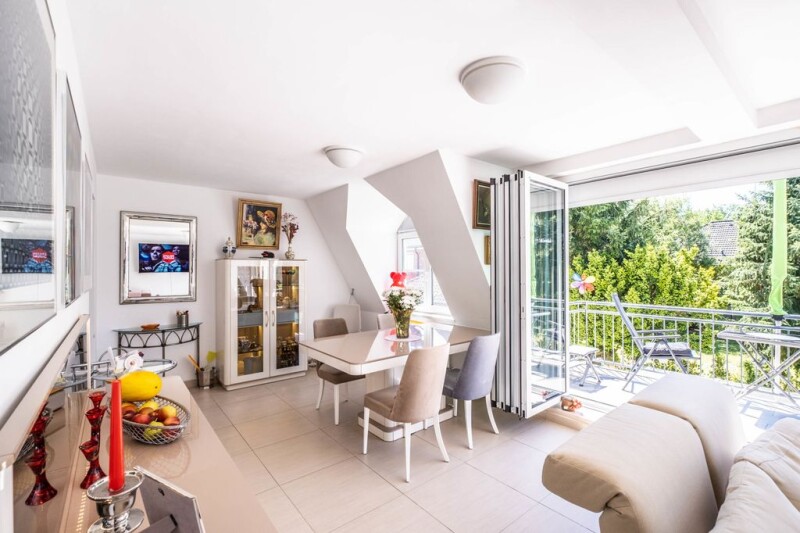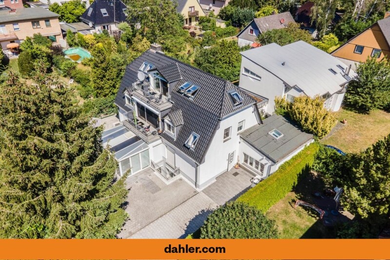 Modern multi-generational villa at Heinrich-Laehr-Park Living in Zehlendorf means living at the highest level - luxuriously and in an ambience that exudes prosperity, high quality and stability. Zehlendorf is undoubtedly still the most exclusive district of the metropolis of Berlin. Large green parks, extensive forest areas and lakes that invite you to swim, such as the Krumme Lanke or the Schlachtensee, characterize Zehlendorf's cityscape, as do elegant single-family homes, stately villas and high-quality new and old buildings. Zehlendorf's exclusive standard of living, an exorbitantly high cultural offering with 17 museums alone, numerous monuments, theaters and cinemas, as well as the finest restaurants and excellent schools, not least the Free University of Berlin, offer an unparalleled attractive residential location in the middle of the German capital. Zehlendorf's districts of Dahlem, Wannsee and Nikolassee enjoy a worldwide reputation as outstanding homes for scientific and research institutions, diplomatic missions and political events. Despite its quiet and idyllic residential areas, the district is characterized by an excellent local public transport network with various bus lines and various S-Bahn and U-Bahn stations, which allows convenient and quick access to the inner city area. The Hüttenweg access road provides easy access by car to the AVUS, the well-known section of the A 115 motorway, to reach Berlin city center or other urban areas in just a few minutes. The residential building offered here with a total living space of approx. 205 square meters and approx. 96 square meters of usable space was built in 1994 and currently has three separate residential units in the basement, the garden floor and the apartment on the 1st floor with a converted pitched roof. The center of life is currently the very bright unit on the 1st floor with a spacious sun terrace and a pitched roof converted for residential purposes. On the garden floor there is a self-contained residential unit with a winter garden and direct access to the garden. There is also a studio on this living level, which can be used either as a work or living area. This offer is rounded off by the very spacious and bright basement area, which includes a living and dining area as well as another bedroom. It is possible to create garden access from this level. The house can be handed over completely free after consultation. The spacious, fully basemented, two-storey house, with a converted attic, has a total of 6 rooms plus 2 living rooms in the basement, a storage room, a total of four bathrooms, three kitchens, a guest toilet, two balconies, a winter garden and a boiler room in the basement. • 7 rooms • 5 bedrooms • 3 fitted kitchens • 2 shower rooms • Bath • Separate dressing area • Utility room • Parquet flooring/tiles • Filled walls • Ceiling height approx. 2.60 meters • Partially floor-to-ceiling insulated glass windows • Electric blinds/awnings • 2 south-facing sun terraces • Video intercom • 2 outdoor parking spaces • Separate studio, usable as a granny flat.