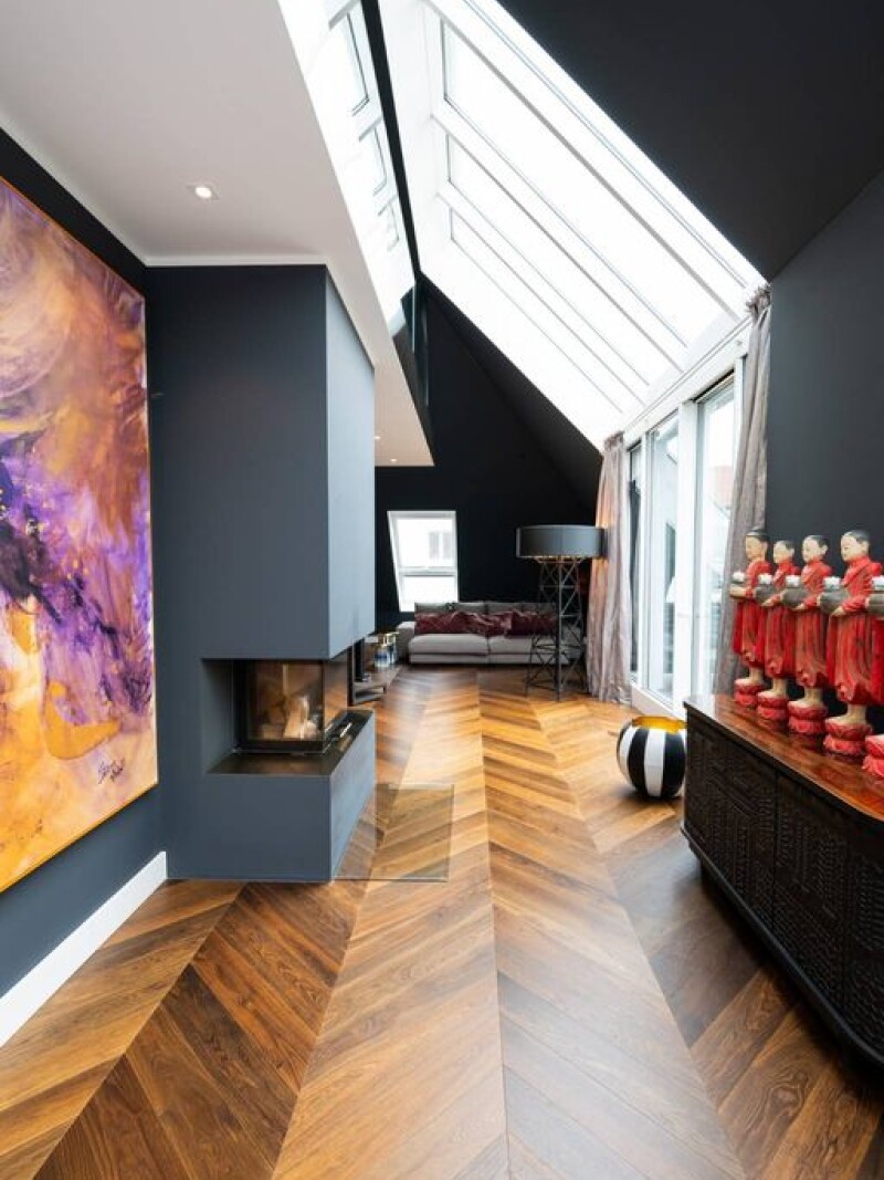 This exquisite penthouse, which was completely modernized in 2021, is located in Munich's sought-after Glockenbach district. The elegant façade of the well-kept apartment building harmonizes perfectly with the surroundings and exudes timeless charm. The interior design impresses with high-quality materials and exclusive details. The spacious living, dining and kitchen area of around 100 m² offers direct access to the generous terrace and creates an airy living feeling thanks to high ceilings of up to 2.80 meters. Large, sliding glass fronts let in plenty of natural light and create a bright, inviting atmosphere. An open fireplace acts as a stylish design element and attracts attention. The four tasteful bedrooms are harmoniously integrated into the room concept and each has a luxurious en suite bathroom that meets the highest standards. Additional amenities such as a loggia with an outdoor shower and a balcony near the kitchen enhance living comfort and invite you to relax outdoors. Practical rooms, including a storage room, a checkroom and a utility room, round off the well thought-out layout. Two spacious cellar compartments and three underground parking spaces, which are easily accessible via a car elevator, offer additional convenience.