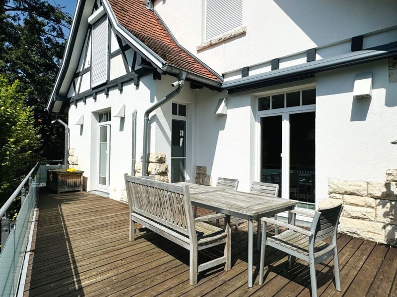 Modern living in a representative half-timbered villa In this solidly built 1920s villa, you can expect the highest living standards in a lot of space. The location of the approx. 699 m² plot also speaks for itself. The externally strikingly stylish and representative character of this rarity has not been lost through the regular and careful conversion and renovation work carried out around 1997 and from around 2003 to the present, but has been carefully and professionally adapted to the spirit of the present. Spread over a living area of approx. 254.00 m² you will find modernity, elegance, an open room design, high ceilings and light-flooded rooms. The use and arrangement of high-quality materials such as natural stone on the outside and inside of the house, glass, stainless steel, (vinyl) parquet, fiberglass wallpaper and stylish wooden box windows complement the special flair that is already evident outside the house. Once you have reached the staircase via the airy entrance area, you will find 3 bedrooms, a large living-dining area that flows into the kitchen, another room with an open ceiling, a living or sleeping gallery in the attic and 2 bathrooms and several separate toilets. Fans of open construction and interior design will be interested to know that the rooms on the upper floor can be easily opened up in certain wall and ceiling areas. This reduces the number of rooms accordingly, but creates an even more spacious effect. We would be happy to explain the details to you personally. The entire property is not visible. This means that the garden allows you to relax after extensive use of the wellness area with sauna and whirlpool in the basement. A terrace is directly attached to this area. Another terrace, accessible via the living-dining area on the ground floor, leads downstairs into the garden. A large balcony on the upper floor offers you a distant view over the neighboring buildings towards the city center. The basement has a separate exit to the courtyard and utility area. Attractively planted and fitted with dark natural stone slabs, this provides the connection to the double garage with electric gate drive, 2 outdoor parking spaces and a wall box for electric vehicles. Firewood, bicycles or garbage cans also find their place here. For everything else, there is also a tool shed available. Another parking space is located at the main entrance. Thanks to the gas central heating (condensing boiler), the fireplaces and the air conditioning in the living and bedrooms on the one hand and the smoke detectors and the Siedle intercom with camera system on the other, the villa always has a pleasant indoor climate and the highest technical security. In summary, it can be said that this villa offers you a harmonious interplay of modern comfort and traditional charm in an attractive neighborhood with short distances to Aalen city center. Thanks to the loving renovations and modernizations in recent years, it is in excellent condition and invites you to enjoy life here to the fullest. Please contact us using the contact form and leave your full address details. We require proof of your creditworthiness in advance for a viewing. This representative villa is located in a preferred residential area of Aalen, from where you can reach playgrounds, kindergartens, schools, shops, sports halls or the climbing hall, a riding school, football pitches, parks, forest paths, the technical college or the city center in just a few minutes on foot. The district town of Aalen is located in the heart of East Württemberg and is connected to the national road network via the A7, B19 and B29. The local innovative companies and the technical college make Aalen not only an interesting economic region, but also an important educational institution. Social, sporting and cultural diversity, a well-developed infrastructure with numerous shopping and supply facilities, kindergartens and schools from different educational providers as well as a wide range of leisure activities make Aalen very livable and attractive. - Inhabited and available by arrangement - Half-timbered villa from the 1920s, full basement - Renovated - Insulated glass windows made of wood with double glazing - Natural stone - Tiles - Parquet - Vinyl parquet - Branded fitted kitchen including appliances - Built-in cupboards in the ground floor bedroom - Fireplaces - Gas central heating (condensing boiler) - Air conditioning - Smoke detectors - Siedle door intercom and camera system - Interior lighting partially controllable via app - Wellness area with additional shower and toilet, sauna, whirlpool and terrace - 2 bathrooms - 3 separate toilets - 1 balcony - 1 terrace with stairs to the garden - Garden and inner courtyard paved with natural stone slabs - Laundry room in the basement - Double garage, electric gate drive - 3 outdoor parking spaces - Wallbox There is a Energy requirement certificate. This is valid until August 15, 2034. Final energy requirement is 265.10 kWh/(m²*a). The main energy source for heating is gas. The year the property was built according to the energy certificate is 1920. The energy efficiency class is H. MONEY LAUNDERING: As a real estate agency, von Poll Immobilien GmbH is obliged according to Section 2 Paragraph 1 No. 14 and Section 11 Paragraphs 1 and 2 of the Money Laundering Act (GwG) to establish and check the identity of the contractual partner when establishing a business relationship, or as soon as there is a serious interest in carrying out the property purchase contract. For this purpose, it is necessary that we record the relevant data from your ID card (if you are acting as a natural person) - for example by means of a copy. For a legal entity, we require a copy of the commercial register extract from which the beneficial owner can be identified. The Money Laundering Act stipulates that the broker must keep the copies or documents for five years. As our contractual partner, you also have a duty to coop