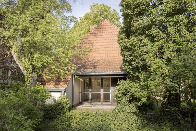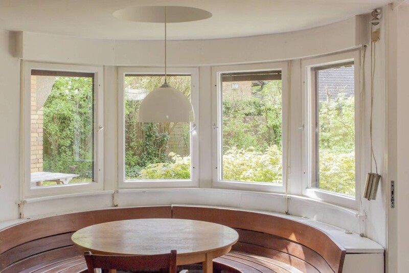 The largely original house was built in 1939/40 and is one of the few private residential designs realized by Hans Scharoun between 1933 and 1939. During a period of inner emigration, when Scharoun had to rely on private commissions to sustain himself, the exterior design of the house remained relatively conventional, while the interior allowed for maximum creative freedom. Developed in close collaboration with landscape architects Mattern and Hammerbacher, the house is a unique work in which garden and architecture form a harmonious unity. The garden is consistently conceived as an extension of the interior spaces into the landscape, establishing a symbolic connection with the residence. The spatial design differentiates niches, levels, and transitions, with bedrooms and bathrooms deliberately conceived as intimate and cozy spaces on the upper floor—placing comfort above representational grandeur. Thoughtfully placed niches and built-in wardrobes throughout the house exemplify Scharoun’s functional and timeless approach. A characteristic feature of the house is the use of wood and stone as building materials, which lend warmth and naturalness to the structure. The open-plan interior allows for a seamless flow between living and working areas, while smaller living spaces can be separated by folding doors. The garden spaces surrounding the house form distinct “layers” that transition smoothly into one another, showcasing the successful collaboration between the architect and landscape designers. Gently contoured levels and fluid transitions define the overall aesthetic, seamlessly merging the living space with nature. Since its construction, there have been no significant changes to the original state of the house. Both the interior and exterior largely retain their original appearance. In the early to mid-1990s, the exterior façade was re-plastered, and the roof covering, wooden cladding, and plumbing elements (roof drainage, windowsills, etc.) were renewed. Inside, new terracotta flooring was installed in the dining area, children's play area, and kitchen. During the same period, both bathrooms were newly tiled, and the sanitary fixtures were updated. The gas condensing heating system is approximately 18 years old. The Mohrmann House stands as an important example of Scharoun’s experimental approach to architecture and his vision of integrating buildings into their natural surroundings. More than eighty years after its construction, it remains a fascinating testament to a modern, functional, and aesthetically refined living space—where functionality and elegance are masterfully combined.