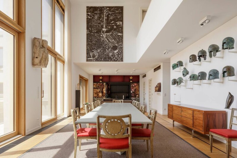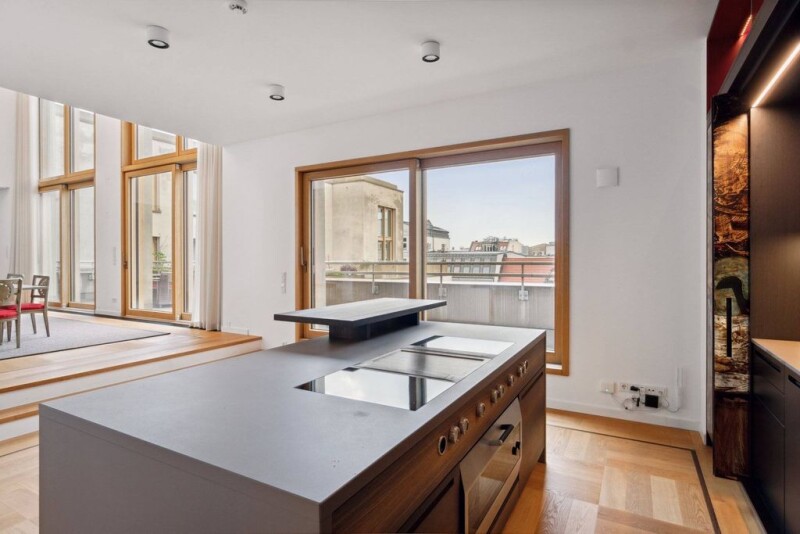 This penthouse is one of the three masterpieces of Palais Varnhagen, the one with the best view and inspired by the historic city palace in the sense of 19th century "salon life", it offers ample space for stylish gatherings on the 6th floor with 6-meter floor to ceiling windows and an impressive gallery. The building was designed by David Chipperfield in 2014 , and offers all aspects of contemporary and elegant housing in the heart of Germany‘s capital close to Brandenburg Gate, the famous Adlon Hotel and know luxury shopping department Galeries Lafayette. A large lobby serviced by a concierge evokes the flair of a traditional grand hotel, while the apartment is equipped with modern technology regarding safety and climate control. A lift allows direct access to the apartment , where a spacious living- and dining area allows for elaborate entertaining. The kitchen is hidden behind a set of sliding doors, painted by the artist Ilya Gaponov. The upper level features two bedrooms and ensuite bathrooms, one of them with a steam room and sauna. The apartment features lovely interior details, such as palisander veneer on the built-in furniture and walk-in closet to mention only a few. This unique property is rounded off with a 60sqm on-top roof terrace with sweeping 360-degree view over the whole of Berlin. At the beginning of the 19th century, "salon life" flourished in many bourgeois flats in European metropolises: people from different backgrounds met in "literary salons" to exchange ideas. In Berlin, Rahel Varnhagen 's evening parties, which took place at Französische Straße 20 until 1827, were particularly popular: Wilhelm von Humboldt, August Wilhelm Schlegel, Prince Louis Ferdinand of Prussia, the Mendelssohn family, Georg Wilhelm Friedrich Hegel and Heinrich Heine were among Rahel Varnhagen's famous guests and admirers of her salons . Just a few houses away, this history now lives on, where the salon idea finds a new stage with private soirées, house concerts and other receptions: the Palais Varnhagen. Star architect David Chipperfield drew inspiration from the historic city palace for exclusive receptions and elegant dinner events at Palais Varnhagen. The salon flats and penthouses of the city palaces take up the advantages of upper-class flats in old buildings and focus on generosity and representation.
