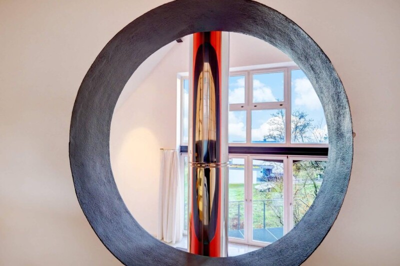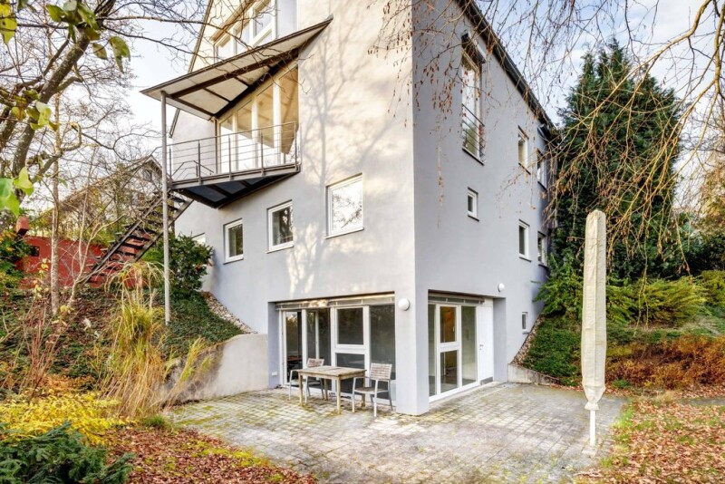 Built in 1995 in solid construction, this home impresses with its extraordinary design and versatility. With a generous living space of around 223 m² and an additional usable area of around 102 m², spread over four levels, it offers numerous possibilities for individual living and working. Particularly noteworthy is the granny flat integrated on the ground floor, which can be used both as an independent living unit for professional purposes and as an extension of the family area. The separate access to the garden is an additional advantage. The centrepiece of the house is the light-flooded living area, which creates an inviting atmosphere with its impressive ceiling height and fireplace and serves as both an oasis of calm and a space for social gatherings. The uninterrupted view of the greenery reinforces the feeling of space and freedom. The adjoining, modern eat-in kitchen, which provides direct access to the garage via a small steel bridge, makes everyday life easier. Whether as a family kitchen or cooking area for communal events - the flexible design allows for a variety of uses. A guest WC and a cloakroom complete the main level. A staircase leads to the open gallery, which is ideal as a reading corner, work area or quiet retreat. From here, you can enjoy sweeping views as far as the Alps. The artistically designed terrace area, which is accessible via its own staircase, forms a private outdoor oasis. Surrounded by mature trees, the garden invites you to relax or work creatively - whether as a retreat or an inspiring workplace.