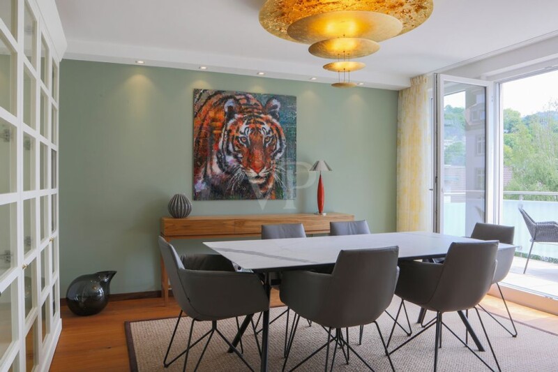 This quiet and exclusive maisonette/penthouse apartment with modern architecture and luxurious furnishings leaves nothing to be desired. You live very centrally and yet quietly. The passenger elevator takes you directly to the apartment, which welcomes you with plenty of light and a very pleasant living atmosphere. Floor-to-ceiling windows and high-quality furnishings as well as roof terraces are among the features of the suite. From the entrance you enter the spacious hallway from which you can access the living rooms, the kitchen and then the private rooms with the bedroom, the guest room and the bathroom with sauna. This floor also offers you a spacious balcony that is directly connected to the dining area. The living room is comfortably designed and furnished. An open fireplace spreads comfort even in the cooler seasons. On the upper floor you will find a spacious gallery with two roof terraces from which you have a fantastic view of most of Baden-Baden's landmarks and which practically invite you to linger. The apartment is being sold fully furnished at the asking price. Baden-Baden is located in the southwest of Germany and is known worldwide for its spas, as a popular holiday resort and international festival city and UNESCO World Heritage site. Nowhere else can you find so much flair and exclusive lifestyle in the pleasant setting of a green, manageable city. Whether sport, culture, gastronomy or wellness, the offers are as varied as they are first-class. The condominium offered here is located in a quiet city location in Baden-Baden and is not far from the festival hall and the city center. The spa house and casino are only a few minutes' walk from here. The city center and all shops for daily needs are also within walking distance. - Complete apartment furnishings - Complete, spacious and very well-equipped kitchen - Entire apartment equipped with data cable bus system and Bose Lifestyle. - High-quality furniture installation - Brick tiled stove from Gabriel-Keramik - Electric roller shutters - Klafs sauna lounge - Passenger elevator - Spacious balconies - Two garage spaces in the duplex parkerMONEY LAUNDERING: As a real estate agency, von Poll Immobilien GmbH is obliged according to Section 2 Paragraph 1 No. 14 and Section 11 Paragraphs 1, 2 of the Money Laundering Act (GwG) to establish and check the identity of the contractual partner when establishing a business relationship, or as soon as there is a serious interest in implementing the property purchase contract. To do this, it is necessary that we record the relevant data from your identity card (if you are acting as a natural person) - for example by means of a copy. For a legal entity, we require a copy of the commercial register extract from which the beneficial owner can be identified. The Money Laundering Act stipulates that the agent must keep the copies or documents for five years. As our contractual partner, you also have a duty to cooperate in accordance with Section 11 Paragraph 6 of the GwG. LIABILITY: We would like to point out that the property information, documents, plans, etc. that we pass on come from the seller or landlord. We therefore do not accept any liability for the accuracy or completeness of the information. It is therefore the responsibility of our customers to check the property information and details contained therein for accuracy. All property offers are non-binding and subject to errors, prior sale and rental or other interim utilization. OUR SERVICE FOR YOU AS AN OWNER: If you are planning to sell or rent your property, it is important for you to know its market value. Have the current value of your property professionally assessed by one of our property specialists free of charge and without obligation. Our nationwide and international network enables us to bring sellers or landlords and interested parties together in the best possible way.