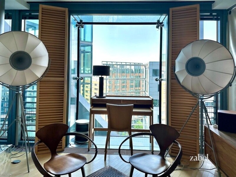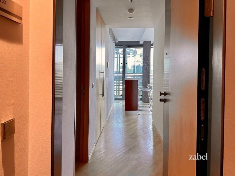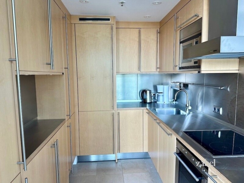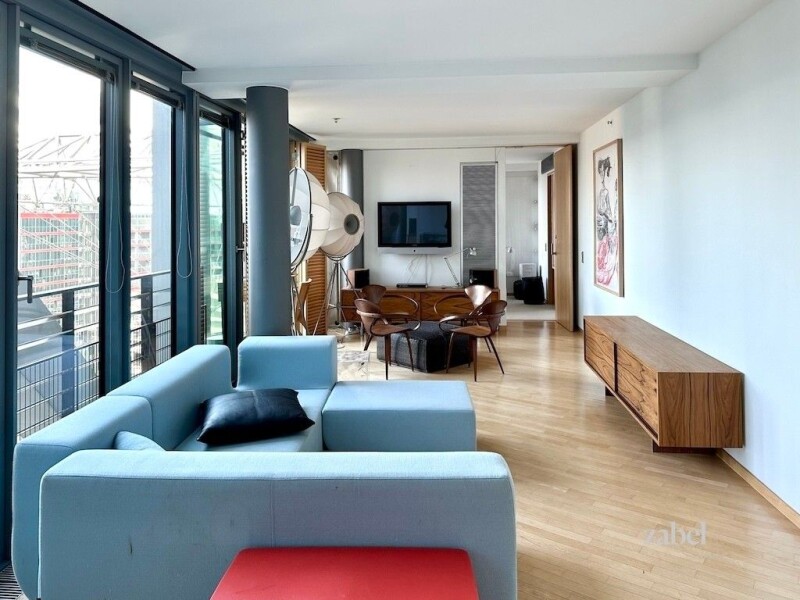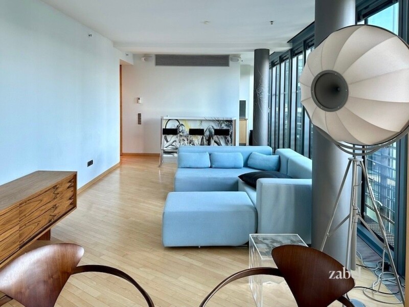 An apartment on the 11th floor at Potsdamer Platz, you can hardly get more cosmopolitan flair than this. The orientation of all rooms towards the atrium of the Sony Center gives the metropolitan charm an inimitable expression. And on the 11th floor you also have a wide view over the roofs of the city. The furnishings and layout of the apartment correspond to the expected character of a city loft. It is not for nothing that the entire Sony Center was designed by the office of the German-US star architect Helmut Jahn. Of course, all apartments can be reached via elevators. A parking space in the underground garage can be rented. The 24/7 concierge service ensures security and is happy to take care of services for your convenience. The furniture in the apartment can be taken over. Move in and feel good! Also ideal as a second home.Potsdamer Platz, the historical interface between the east and west parts of the city and a transport hub since time immemorial. Redesigned and built in the 1990s by the best architects in the world. Here you live in the middle of the pulsating metropolis and yet find a green oasis, a Central Park atmosphere, in the neighboring Tiergarten! If you are looking for a chic city apartment in a central location in Berlin, this is the place for you. Needless to say, all amenities and entertainment options are practically a stone's throw away. Under Potsdamer Platz, which was the largest construction site in the world at the time, underground and suburban train lines cross, taking you to all parts of the city, to the nearby main train station or to the airport. The modern architecture makes it possible for you to live here in peace despite the central location. Come and see for yourself at an initial viewing appointment. - Fitted kitchen with fridge-freezer, dishwasher, stove/oven and microwave - several built-in cupboards - guest toilet (with space for washing machine) - mechanical ventilation - air conditioning - underfloor heating convectors - sprinkler system - floor-to-ceiling complete glazing with internal blinds - parquet flooring in the living and dining area - carpet in the bedroom - tiles in the kitchen, bathroom and toilet.