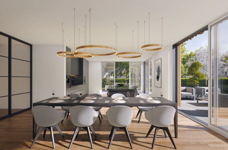 "Isarflimmern", a construction project by Tschunke Houdek Immobilien GmbH, combines the most modern living with well-thought-out architecture, great attention to detail and a clear focus on quality in a perfect location. From Munich to the source of the Isar (called the "raging" by the Celts and still the raging one to this day), Isarflimmern is a unique paradox between the sophisticated cosmopolitan city of Munich, the headquarters of 7 global corporations listed in the DAX and centuries of tradition in the most beautiful natural landscape. Isarflimmern is a Bavarian attitude to life or, to paraphrase the former Bavarian Prime Minister Edmund Stoiber, who lives in the region, "laptop and Lederhosen". Villas and modern single and two-family houses characterize the architectural face of the community. On the high bank of the Isar, in the community of Zell, a multi-family house with just 3 residential units and a top-class single-family house are being built - pure Isar shimmer! High above the Isar valley is the community of Schäftlarn with its 5 districts and community parts Hohenschäftlarn, Kloster Schäftlarn, Neufahrn, Ebenhausen and Zell. Schäftlarn is located right between the cosmopolitan city and the mountains - big city life and relaxation in the Bavarian Alpine foothills - Five Lakes Region, perfectly connected to the A96 motorway (Munich-Garmisch) and the Munich S-Bahn network. Shops for daily needs, doctors and pharmacies, three kindergartens, the Schäftlarn primary school, the Gymnasium in Kloster Schäftlarn and two other Gymnasiums in Icking are just a few minutes away. Thanks to the excellent infrastructure connection, Munich city center can be reached easily and stress-free via the A 95 motorway. The Ebenhausen-Schäftlarn S-Bahn station is about 10 minutes away on foot, and in about 30 minutes you will be in the heart of Munich, right on Marienplatz. This combination of urban life, high quality of life and numerous leisure opportunities makes Zell one of the most sought-after residential areas on the high bank of the Isar. The key data for the maisonette apartment on 3 levels: •approx. 240 m² of pure living space •approx. 46 m² of usable space •6 rooms on 3 levels •2 underground parking spaces + outdoor parking space •Own spacious garden facing south •House within a house concept Well thought-out architecture and large windows create a unique sense of space in this maisonette apartment and almost make the boundaries between the inside, outside and terraces disappear. On the upper floor, an additional balcony area brings a lot of light into the rooms. All windows, patio and balcony doors are made of wood-aluminum windows with triple insulating glazing in accordance with the heat requirement calculation. The inside of the window is kept in a classic and timeless white. A high-quality plank floor in oak is provided for the furnishing of your living rooms and bedrooms, as well as kitchens and hallways. Of course, your own ideas can also be implemented. A high-quality and exclusive pre-selection of sanitary equipment was put together for you in cooperation with the company Elements. On the ground floor, importance is attached to ensuring that the whole family has space in the approx. 69 m² living, dining and cooking area. These rooms can also be separated if desired. If you would like to work on the ground floor, want to live on the ground floor as a family member or want to accommodate a guest, there is also the option of retreating to a separate area with a terrace and bathroom en suite. From the study you can go directly to the hobby room via a spiral staircase. Modern architecture and design fit perfectly into the landscape. High-quality building materials and exclusive materials in the interior design are an immediately visible contribution to long-term sustainability and value retention over generations. The energy certificate will be submitted after completion.