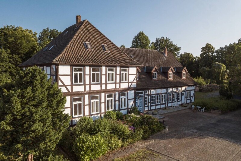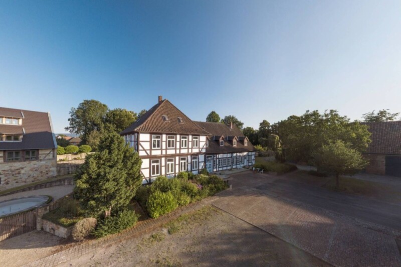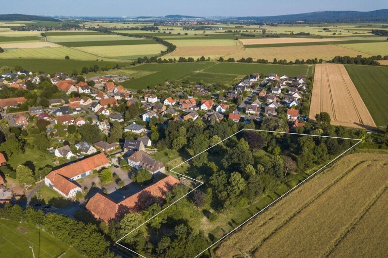 The Langreder manor, whose origins date back to the 15th century, was originally an agricultural property. Along the Stockbach, which was formerly known as Mühlbach, the water mill and the quarry stone barn were initially built as the founding site of the farm and the town of Langreder. Owned by the von Klencke family, barons of Hämelschenburg Castle, the farm developed into a four-sided farm in the following centuries. In addition to the manor house from 1734, a half-timbered barn and around 1850 the large red brick barn were built as a cattle shed. The impressive building ensemble, consisting of the spacious, partially listed manor house and two barns, offers you the opportunity to realize your individual concept. The stately manor house has a current living space of approx. 440 m² and offers additional expansion potential of up to approx. 620 m². The property has a total of 12 rooms, 5 bathrooms, 2 guest toilets, a kitchen and three basement rooms. It also has a spacious south-facing terrace where you can enjoy the hours of sunshine. The manor house offers various usage options and is ideal for a large family, as a home with an integrated office or work area or for special interests such as wellness, fitness, garage or exhibition areas. It is also possible to divide the property into three separate units or independent halves of the house for multi-generational living or families of friends without any problems. Plans for dividing the property into separate units are already in place. The barns belonging to the ensemble can be converted into attractive living space and/or commercial space with up to 2,500 m² of living/usable space. The permits and plans for this are also available. It is also conceivable that the barns could be used again as horse stables or as garages. The manor house with the barns and the estate garden behind it offers a plot of land of approx. 8,800 m². Additional information: Optionally, another part of the castle garden with around 11,600 m² of building land can be purchased. This plot is not part of the current offer, but can be purchased at the same time as the manor house if desired. In addition, a preliminary building application for the construction of 16 single-family homes was submitted for this part of the castle garden, which was approved. The tax depreciation options make this listed property particularly attractive.