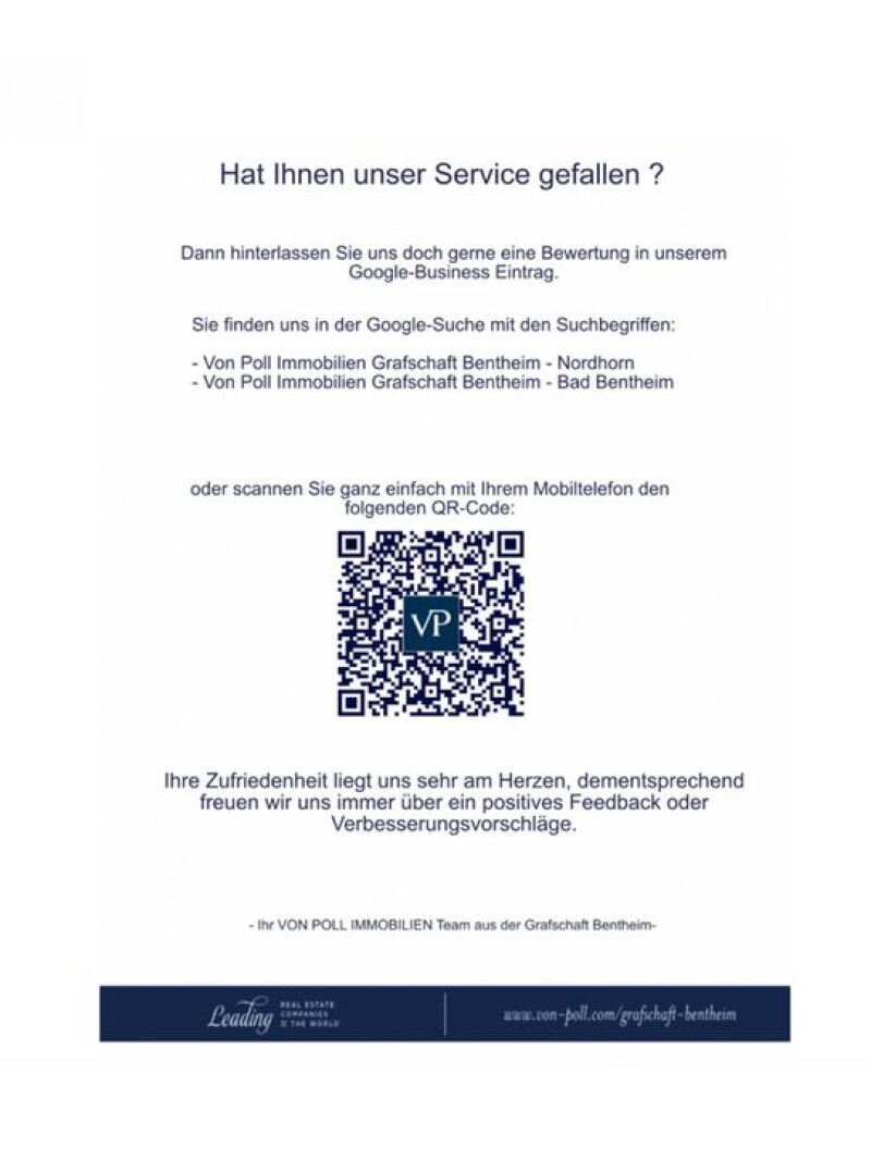 A spacious practice area in the heart of Nordhorn is for sale. The premises are on the first floor of a residential and commercial building built in 1997 on the edge of the city center. The practice area can be reached by elevator. In the basement there are storage, technical, storage and common rooms, on the ground floor there are only business premises and on the first floor the practice rooms. There are further apartments on the second floor. The attic is used as a warehouse. The property includes a total of 8 parking spaces in the middle courtyard area. A roof terrace also offers a sunny break. With around 53,000 inhabitants, Nordhorn is the largest city and also the district town in the district of Grafschaft Bentheim. It is located in the extreme southwest of Lower Saxony on the Dutch border. As a district town and member municipality in the Euregio, Nordhorn is the economic and cultural center of the district. The convenient traffic situation is particularly due to the nearby A 30 (west-east connection) and A 31 (north-south connection) motorways, as well as the B 213 federal highways from Denekamp (NL) towards Bremen and the B 403 from Münster to Coevorden (NL), which intersect in Nordhorn. All important supply and service facilities are available in the city. This property is located in the city center of Nordhorn. Parking spaces for visitors are in the courtyard. Carpeting has been laid across the entire floor. A light tile has been used in the bathroom and the existing guest toilets. The windows correspond to the year of construction. An energy consumption certificate is available. This is valid until July 14, 2029. Final energy consumption is 80.60 kWh/(m²*a). The main energy source for heating is gas. The year the property was built according to the energy certificate is 1996. The energy efficiency class is C. MONEY LAUNDERING: As a real estate agency, von Poll Immobilien GmbH is obliged according to Section 2 Paragraph 1 No. 14 and Section 11 Paragraphs 1, 2 of the Money Laundering Act (GwG) to establish and verify the identity of the contractual partner when establishing a business relationship, or as soon as there is a serious interest in implementing the property purchase contract. To do this, it is necessary that we record the relevant data from your ID card (if you are acting as a natural person) in accordance with Section 11 Paragraph 4 of the GwG - for example by means of a copy. For a legal entity, we require a copy of the commercial register extract showing the beneficial owner. The Money Laundering Act stipulates that the agent must keep the copies or documents for five years. As our contractual partner, you also have a duty to cooperate in accordance with Section 11 Paragraph 6 of the GwG. COMMISSION NOTE: By making an inquiry to and using the services of von Poll Immobilien GmbH, a brokerage contract is concluded. If the activity of VON POLL IMMOBILIEN GmbH results in an effective main contract with the owner, the interested party does not have to pay any commission/brokerage fee to von Poll Immobilien GmbH when concluding - a RENTAL AGREEMENT. - a PURCHASE AGREEMENT must pay the local commission/brokerage fee to von Poll Immobilien GmbH against invoice. LIABILITY: We would like to point out that the property information, documents, plans, etc. passed on by us come from the seller or landlord. We therefore assume no liability for the accuracy or completeness of the information. It is therefore the responsibility of our customers to check the property information and details contained therein for accuracy. All property offers are non-binding and subject to errors, prior sale and rental or other interim use. OUR SERVICE FOR YOU AS AN OWNER: If you are planning to sell or rent your property, it is important for you to know its market value. Have the current value of your property professionally assessed by one of our real estate specialists, free of charge and without obligation. Our nationwide and international network enables us to bring sellers or landlords and interested parties together in the best possible way.