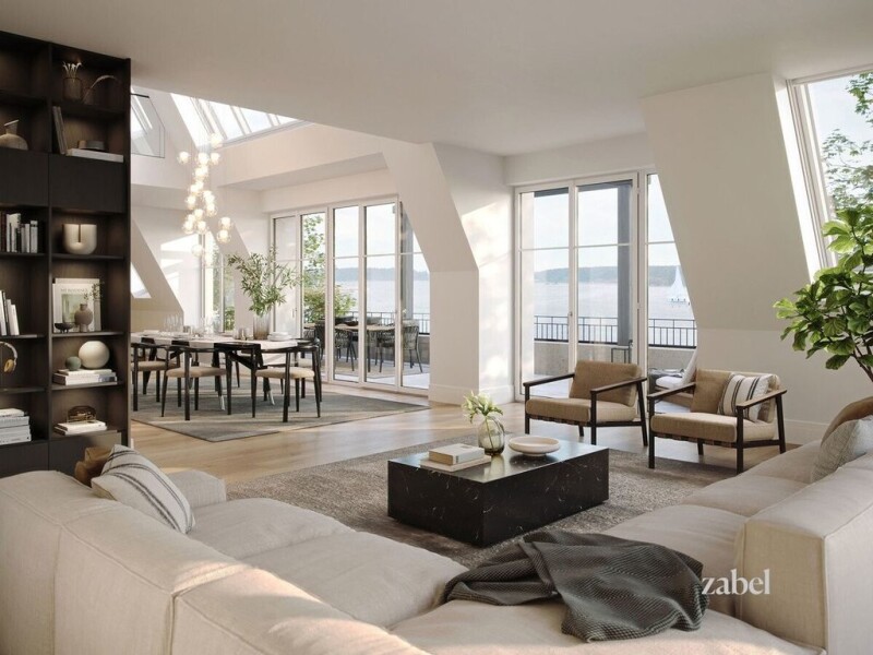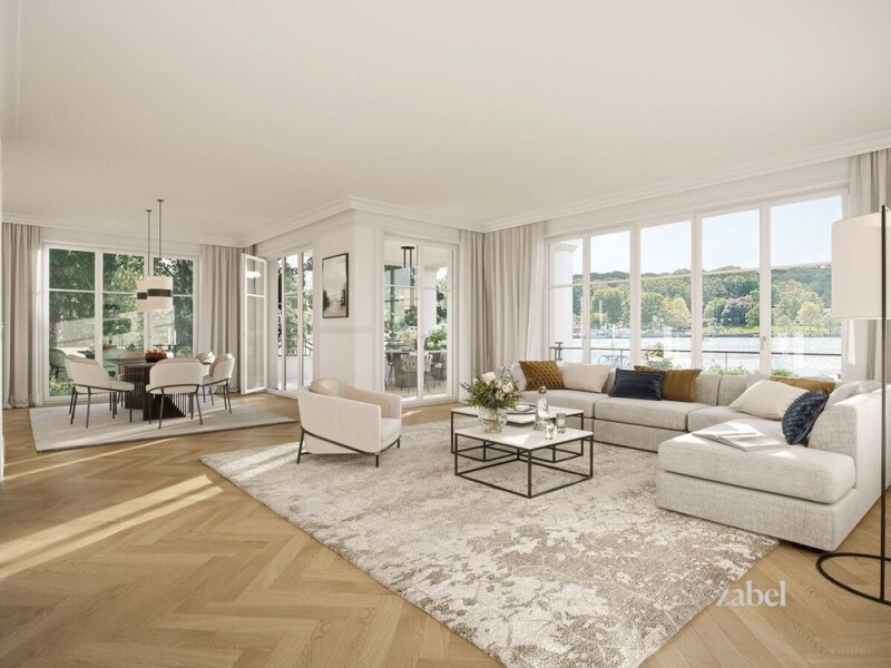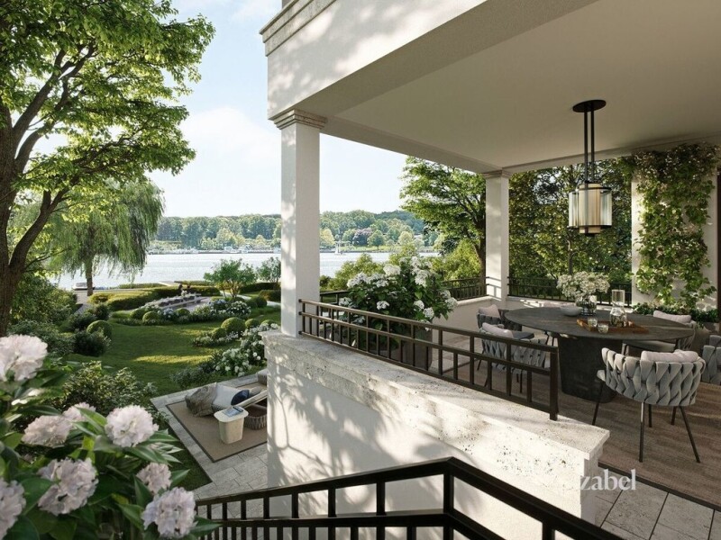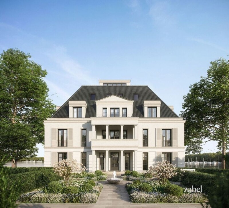 • Landscaped garden with boathouse, jetty, and baroque garden • All residential units with their own ventilation system • Rooms with plastered walls of the highest quality (Q4) • French oak parquet (Fontaines/Burgundy) 8-fold sealed, underfloor heating • Wooden windows with triple-glazed insulation with electric Venetian blinds and glass break detectors • Bathrooms with Graniti Fiandre Taxos 60x60 porcelain stoneware elements, large-format mirrors, other brands: Laufen, Cocoon, Pauli + Sohn, Kaldewei • Smart home system, VDSL line, video intercom • Switches and sockets from Gira and Berker • Heating & hot water: geothermal heat pump, solar roof tiles (photovoltaic system) • Elevator from underground to the desired floor • Each apartment with burglar alarm system • Apartment door with self-locking motor lock.