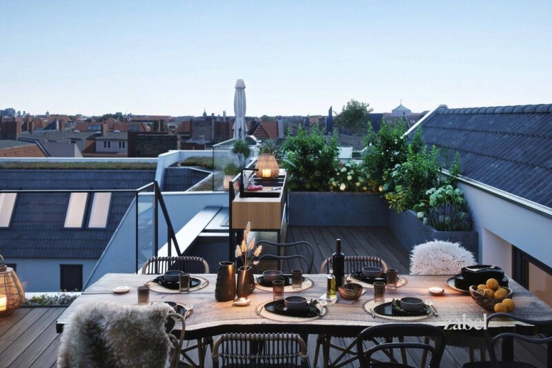 Above the rooftops of Berlin: Luxury penthouse by Swen Burgheim. The unique top floor apartment with a ceiling height of approx. 5.50 meters, gallery level, roof terrace and elevator directly into the apartment is certainly one of the highlights ever developed by the designer and architect Swen Burgheim. A unique living concept in loft style with an open floor plan, large window fronts and light-flooded rooms is being created on approx. 300 m². A glazed elevator in the courtyard of the apartment building takes you directly to the penthouse with a key. In total, the apartment has five rooms, with a central living-dining area, two bathrooms and a guest toilet. The spacious living area, with an area of approx. 114 m², offers plenty of space for social gatherings and private moments with an open kitchen adjacent to the lower terrace, an open fireplace, a dining area in the bay window and a huge seating area. The kitchen, designed especially for this property, is located directly on the lower terrace, from which you can access the approximately 40 m² roof terrace. From here you have a wind-protected 180° view of the City West. From the adjacent dining area, which is located in the bay window of the roof, you have a beautiful view of the street line of Uhlandstrasse. The open fireplace in the middle, between the cooking-dining area and the living area, invites you to linger after dinner. On one side of the approximately 5.50 meter high roof ridge, there is the master bedroom with en suite bathroom and separate toilet on one side and a wellness area with sauna and terrace on the other side. A hallway from the dining area leads to two further bedrooms with a bathroom, which both rooms share. Let yourself be inspired by Swen Burgheim's architecture and his unique living spaces during a joint tour. City of freedom, city of walls, metropolis without curfew - there are many reasons to visit Berlin and even more to live here! Poor but sexy was once upon a time. Today, a young, international scene of visionaries, founders and initiators are drawn to the city. This infectious dynamism, the unique history of the capital and the diversity of the neighborhoods make Berlin one of the most exciting and livable cities in Europe. The capital's lifestyle was shaped in Mitte for a long time. But eyes have long since turned in amazement to the west again, because City West has undergone a complete makeover, with new addresses such as Bikini Berlin, Upper West and Zoofenster with the Waldorf Astoria contributing to this. Other projects such as the Mall of Ku'damm, Ku'damm Karree and the Neues Kranzler Eck quarter are bringing about the impressive transformation of City West. In the Wilmersdorf district, on the border with Schöneberg, you are in a very central yet green and well-kept residential area. Away from the hustle and bustle of Ku'damm, things are rather quiet and relaxed here. Smaller shops and stylish cafés and restaurants round off the neighborhood atmosphere. Just a few minutes away are the Fennsee, the Volkspark Wilmersdorf and the Grunewald, all of which offer local recreational opportunities that invite you to take a leisurely stroll at any time of year. Various shops, restaurants, bars, cafes, pharmacies, drugstores and also international and national schools and kindergartens are located in this part of the city. The central location of the property offers optimal transport links to various destinations in the city. The Güntzelstraße underground station (U9) and the Hohenzollerndamm underground station (U2 and U3) can be reached on foot in just a few minutes. The Hohenzollerndamm motorway exit of the A100 can also be reached in under 5 minutes. - approx. 5.50 meter ceiling height with gallery level - rooftop terrace with approx. 40 m² - two further terraces each with approx. 14 m² & approx. 8 m² - industrial style: open floor plan of the living and dining area - 5 rooms distributed over the front building and side wing - 2 bathrooms - guest toilet - master bedroom with en suite bathroom - wellness area with sauna - large window fronts - light-flooded rooms - high-quality materials - exposed concrete and reclaimed clinker walls - cement-bonded designer floors and oak floorboards - elevator with key system - individually made-to-measure luxury fitted kitchen.