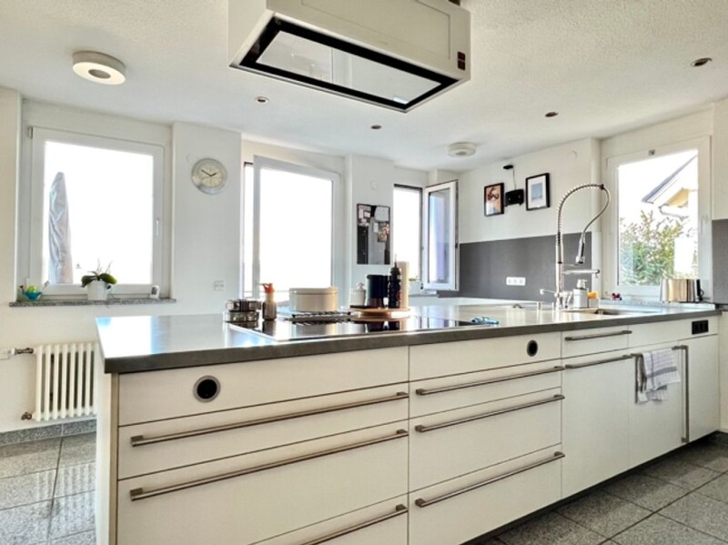 Villa with 2 residential units in a prime location This beautiful villa is in Schopfheim, in the district of Wiechs, a popular residential area with a view of Schopfheim. Particularly popular with families and couples because of the good connection to the centers of the border triangle on the one hand and the quiet location with a beautiful view of the Wiesental and the Black Forest on the other. The city of Schopfheim itself, with around 20,000 inhabitants, is the southern center of the lower Wiesental with excellent transport connections. Schopfheim has a very good infrastructure, with a school center with all types of schools such as high school, a variety of shops, doctors, upscale restaurants and a wide range of sports. You can reach Lörrach, Weil am Rhein or Basel in about 15-20 minutes with the Swiss Regio-S-Bahn and the well-developed B317. In addition to the old town center in a modern residential area, Wiechs has a kindergarten, primary school and a village shop. School and kindergarten within walking distance. approx. 10 minutes to Schopfheim approx. 20 km to Basel Are you looking for a multi-generational house with separate residential units? Have you always dreamed of a large eat-in kitchen..? Would you like to combine living and working? Then we have exactly the right property for you. A few years ago, the spacious villa was divided into two separate apartments with separate entrances. From the maisonette apartment on the upper floor and attic you have a fantastic view over the Wiesental. The apartment on the ground floor or basement has ground-level access to the terrace and the garden. From the kitchen you have seamless access to the spacious dining area and the living room. The large balcony can also be reached from the kitchen and the living/dining room. Of course there is also a large storage room. A second balcony with a view of the garden is accessible from the living room. In winter you can sit comfortably by the flickering glow of the Swedish stove. + Large eat-in kitchen with large balcony + storage room + Swedish stove + several smaller balconies + conservatory + guest room with guest bathroom first floor and top floor + wellness bathroom + extra toilet + bedroom with dressing room + 3 other rooms + balcony + large living area with Swedish stove + 2 rooms with Sloping ceilings (very bright) + bathroom with shower + kitchen with balcony Other equipment: + terrace + large garden + garage + glider garage + floor-to-ceiling windows with blinds (on the top floor) + electric shutters Request a detailed synopsis free of charge and get access to More information. After the request you will get access to the 360° tour. Write to us directly at: info@vcw-immo.de Homepage: www.vcw-immo.de.