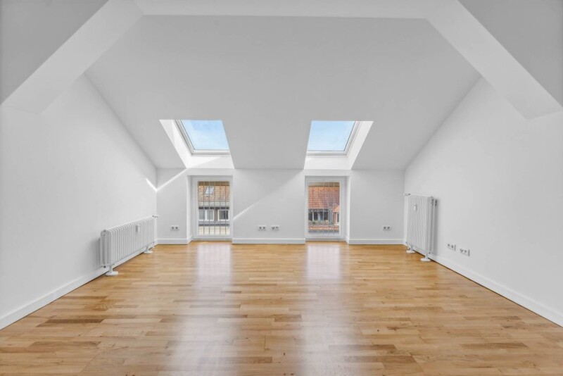 This exquisite 142 m² top-floor apartment is located in one of the most sought-after locations in Berlin-Kreuzberg in the immediate vicinity of Oranienplatz. The apartment is located on the 5th floor of a charming building dating back to 1900 and offers an incomparable panoramic view of the city from its 42 m² sun terrace. The spacious living and dining area impresses with its clever interior design, both rooms merge into one another and yet are separate. There is a large floor-to-ceiling window in the living area, which creates a bright and light-flooded atmosphere. In the hallway, a skylight complements the lighting concept and lets in additional daylight, ensuring a pleasant brightness in all areas of the apartment. The parquet flooring gives the apartment a warm and cozy touch. A special feature of the property is the gallery with direct access to the roof terrace. The gallery creates a bright and airy atmosphere, which further enhances the feeling of living. The bathroom is brightly tiled and has a bathtub, a separate shower and a large window that provides freshness and brightness. You have the option of acquiring another attic apartment and connecting these two apartments. The prerequisites for this have already been created. With a total of 260 m², this will create a spacious living atmosphere. A separate elevator can also be installed on request. This top-floor apartment combines comfort and a spectacular view over the rooftops of Berlin - a real gem in the middle of the vibrant capital. Welcome to your new home in Berlin Kreuzberg. Type of heating: central Main energy source: Natural gas Energy certificate available.