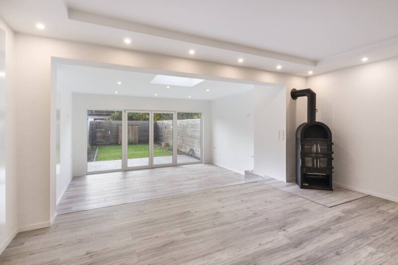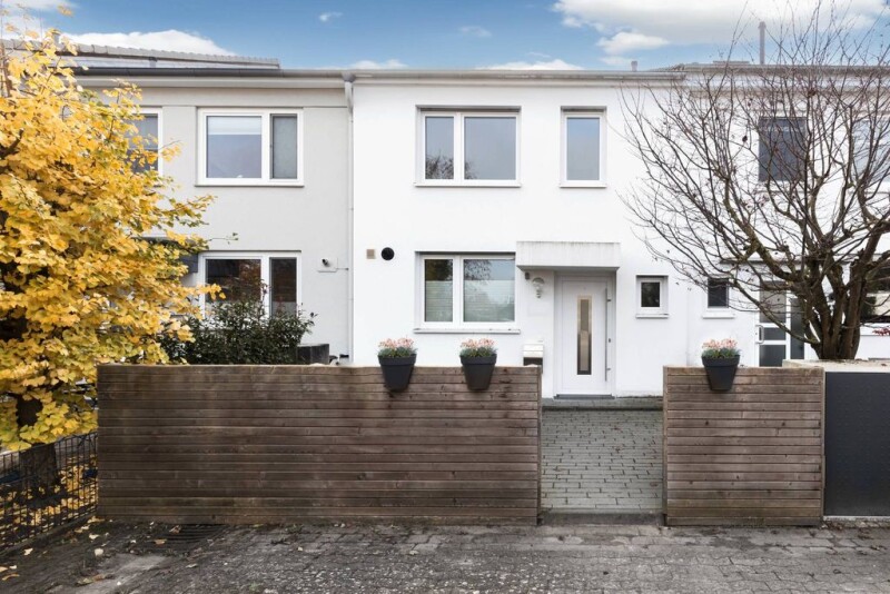 Built around 1978, this terraced house with a partial basement was extensively renovated and modernized by the current owners in 2020/2021 and a conservatory was added. Today, it presents itself in a family-friendly and modern living ambience. On the first floor is the spacious, approx. 55 m² living/dining area with a wood-burning stove and elegant wood-effect tiles, which is bright and flooded with light thanks to a skylight and the large window front with access to the south-west-facing terrace and the garden. A barrier-free entrance, a kitchen, a guest WC and access to the cellar complete the first floor. On the second floor are the master bedroom, two children's bedrooms and a modern, brightly designed daylight bathroom with bathtub as well as the bright, friendly staircase, which leads to the attic, which was developed in 2020, with a versatile room that can be used as a bedroom, hobby room, fitness room or study, for example, and an en suite shower room and storage area. The partial basement, the low-maintenance, south-west-facing garden and a garage in the garage yard in front of the house round off this attractive offer.